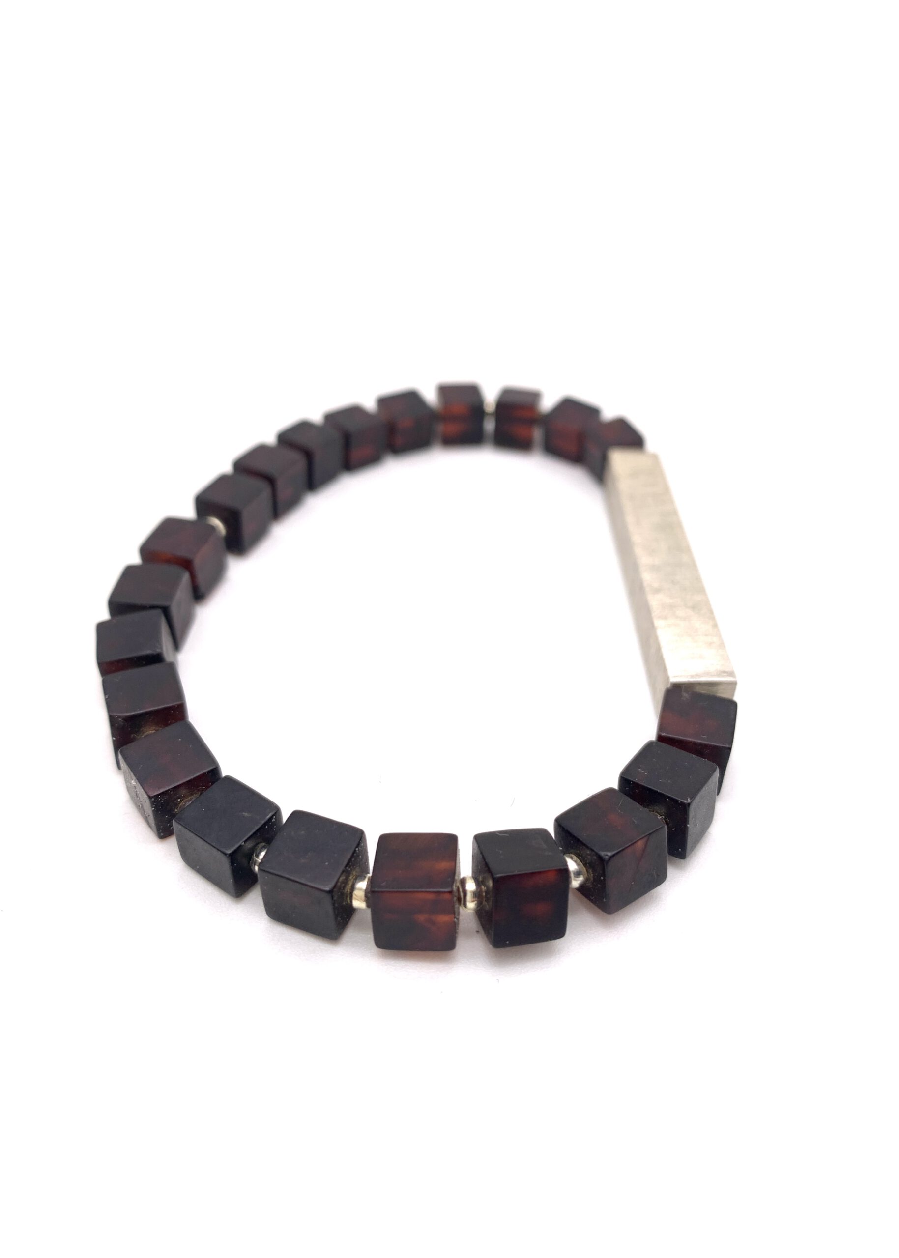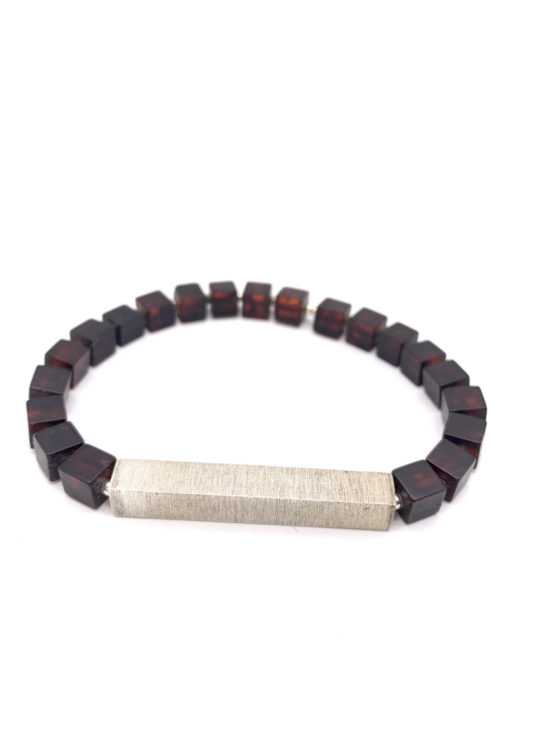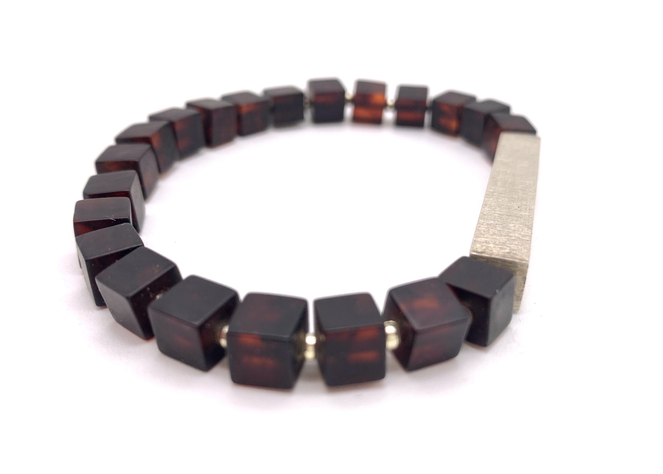 Dieses Bernstein Armband besteht aus matten Bernsteinwürfeln in warmem Cognac-Ton. Die klare, geometrische Form der Würfel verleiht dem Armband eine ruhige, strukturierte Wirkung.