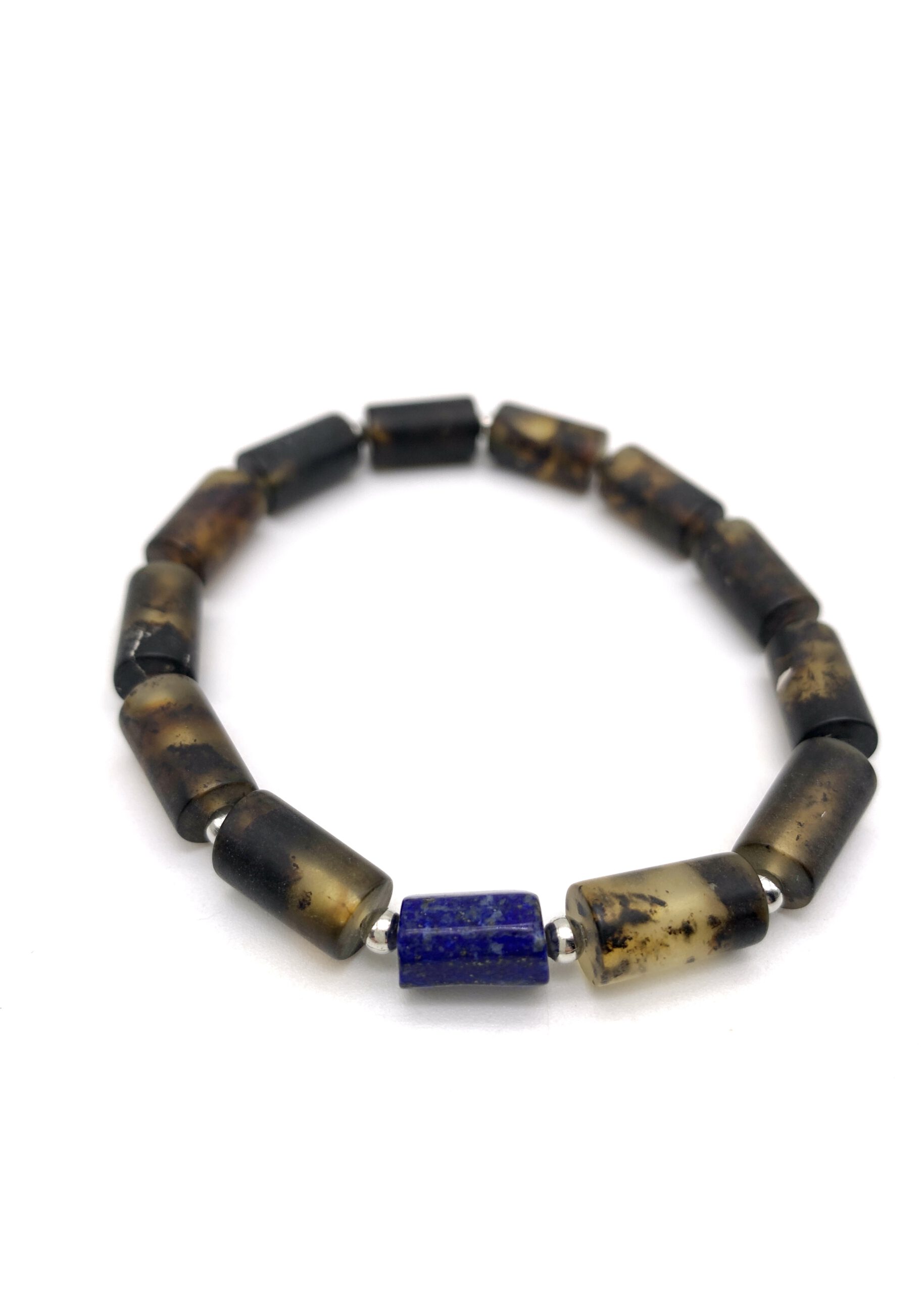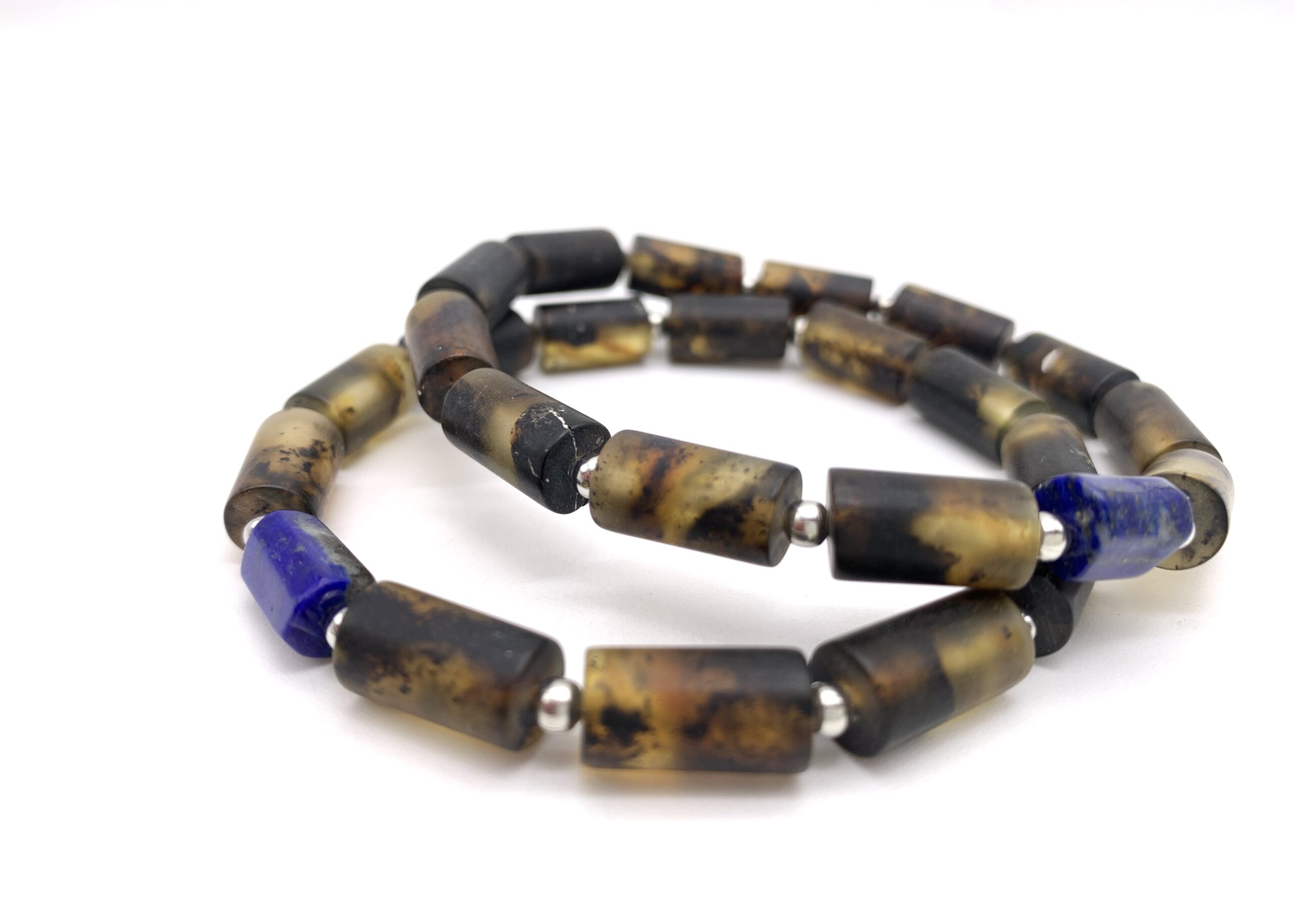 Schlicht und elegant zugleich – das Armband aus schwarzen Bernstein und Lapis Lazuli ist ein Hingucker.