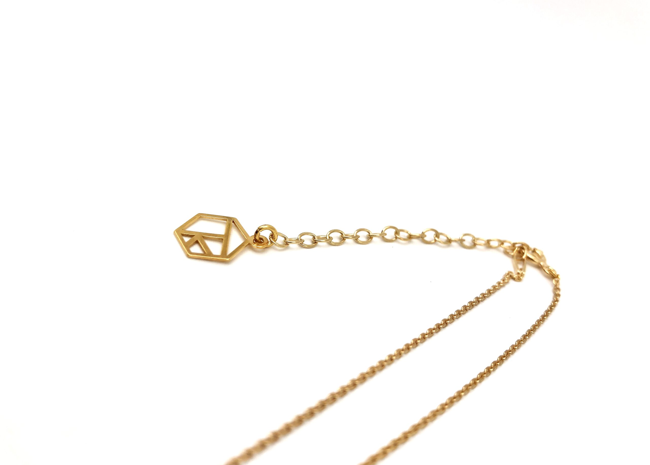 Das Armband ist aus vergoldetem 925er Silber, am Ende befindet sich eine Verlängerung und das Firmenlogo.
