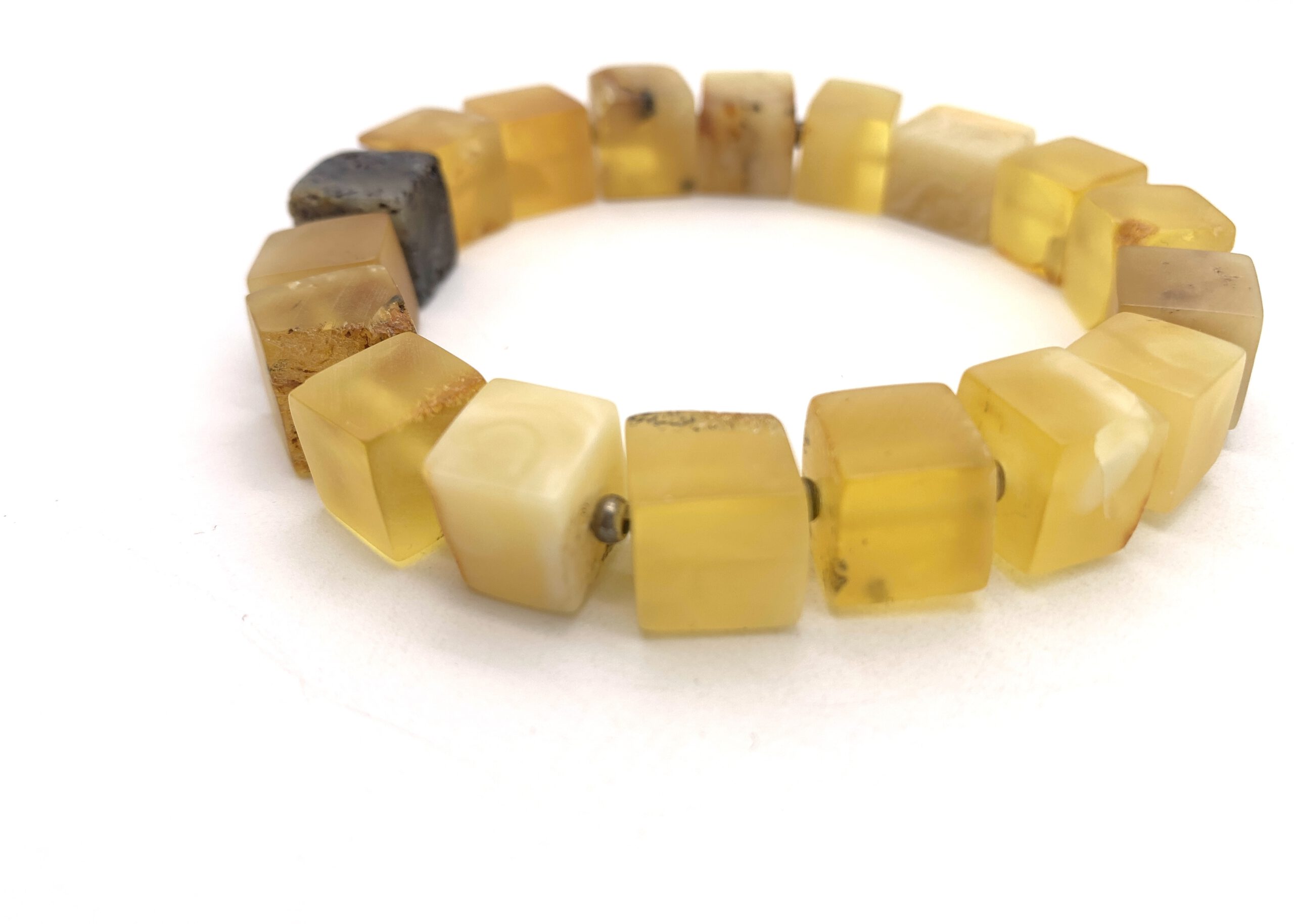 Liebhaber einzigartiger Naturmaterialien werden von diesem traumhaften Bernstein Armband begeistert sein. Sorgfältig gefertigt aus echtem baltischem Naturbernstein, vereint dieses Schmuckstück die sanfte Eleganz von milchig-gelben und weißen Bernsteinwürfeln. Jeder einzelne Stein ist ein Unikat, geformt von der Natur über Millionen von Jahren.