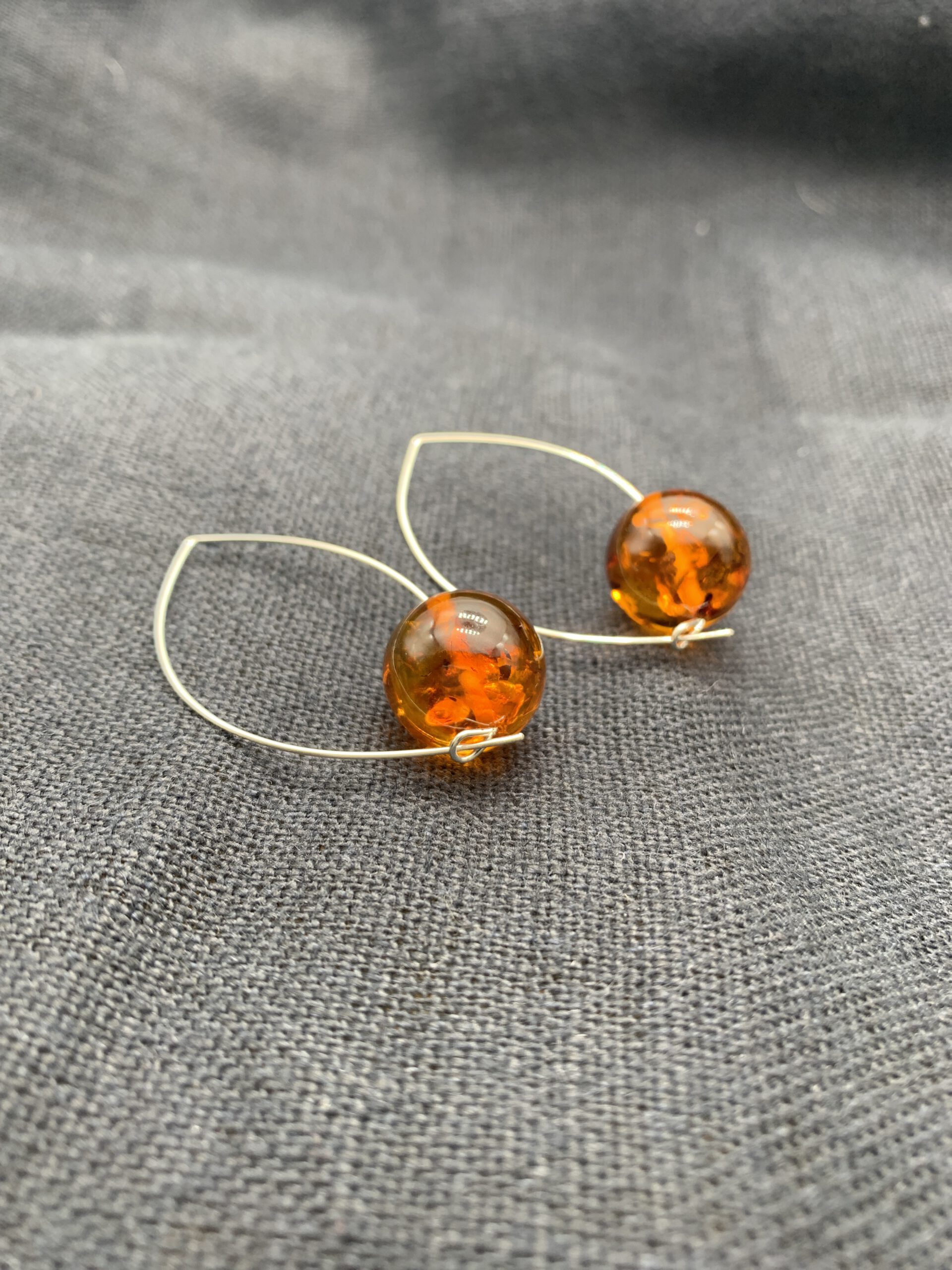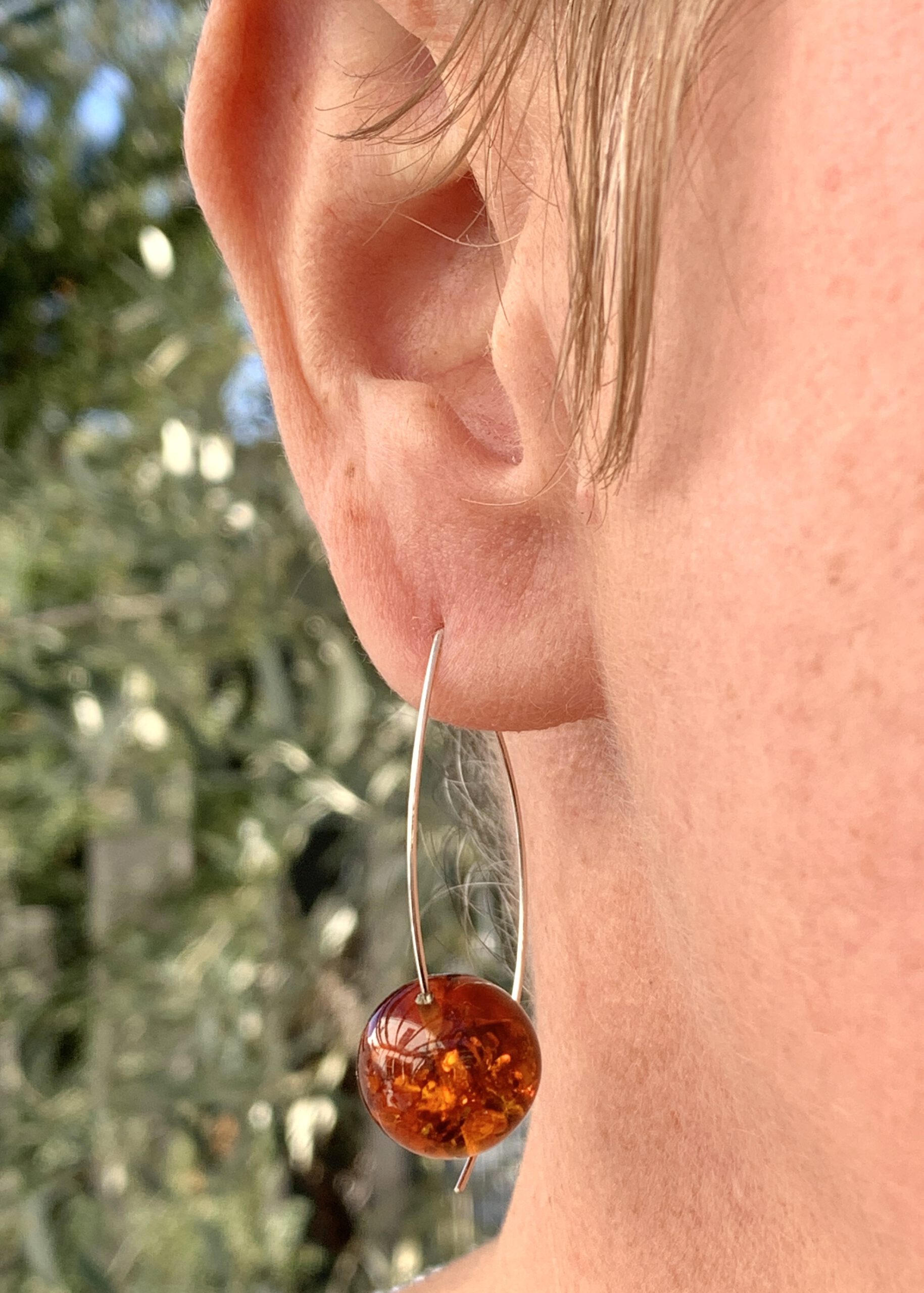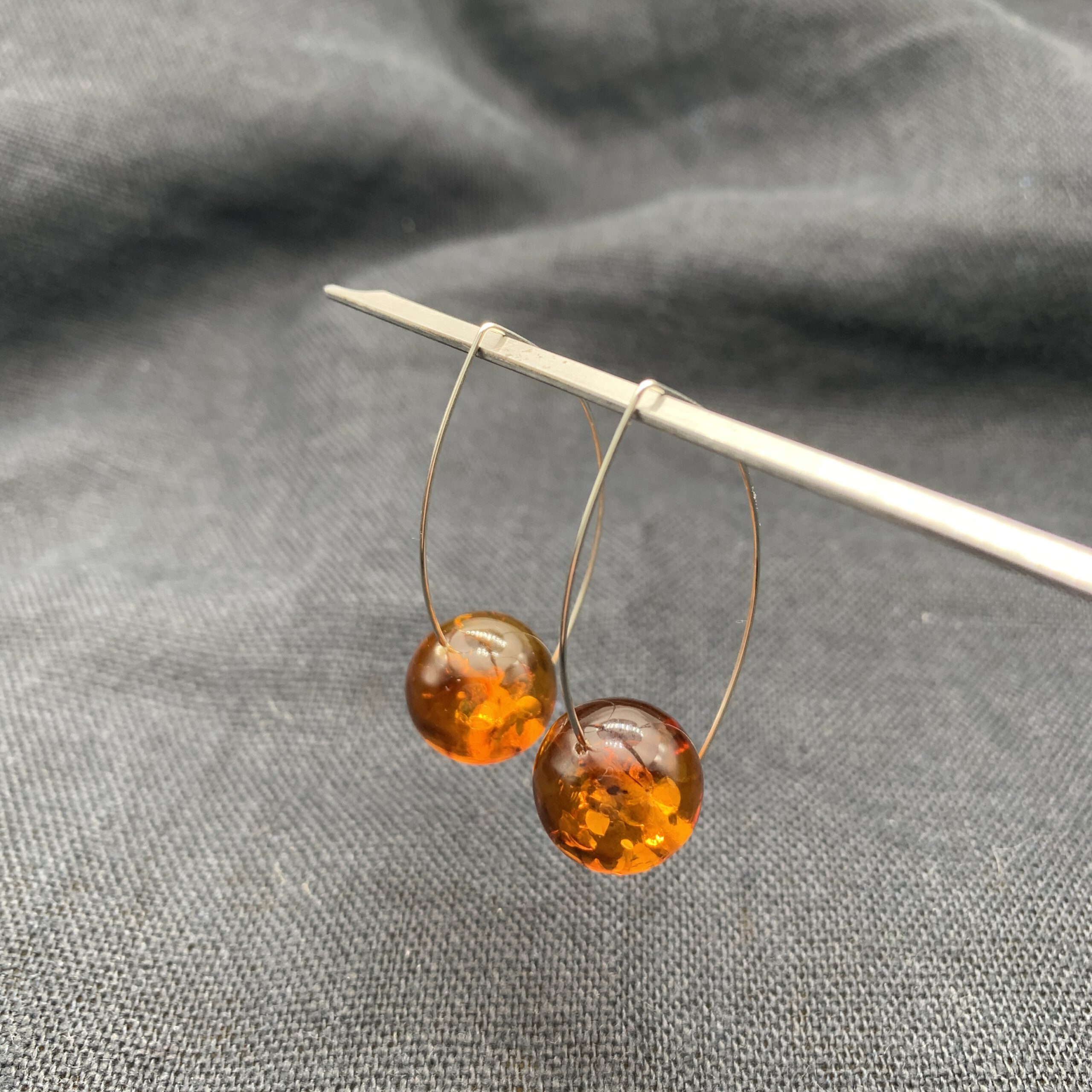 Die 925er Silber-Ohrbügel geben den 1,6 cm großen Bernsteinkugeln einen zeitgemäßen Rahmen.