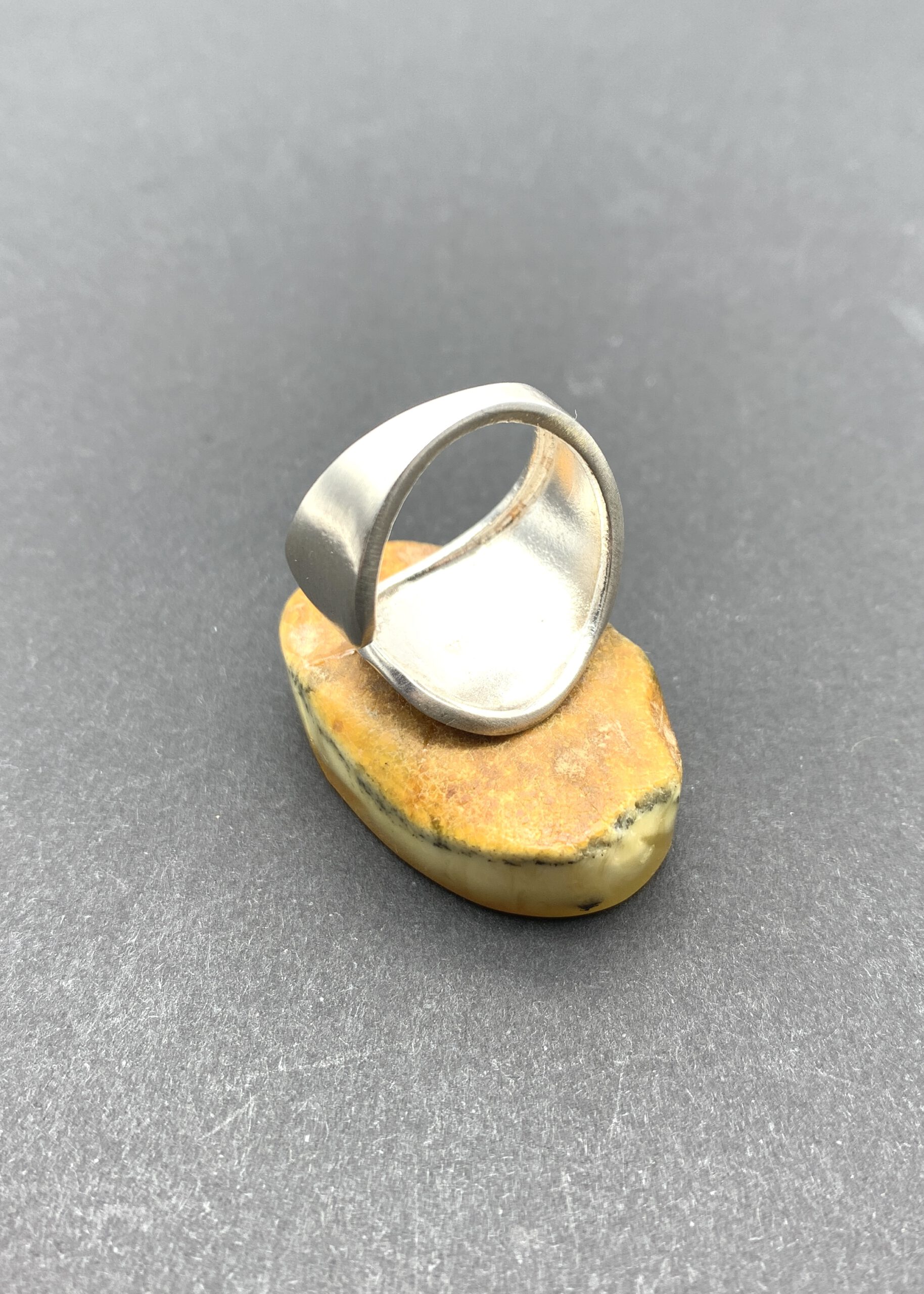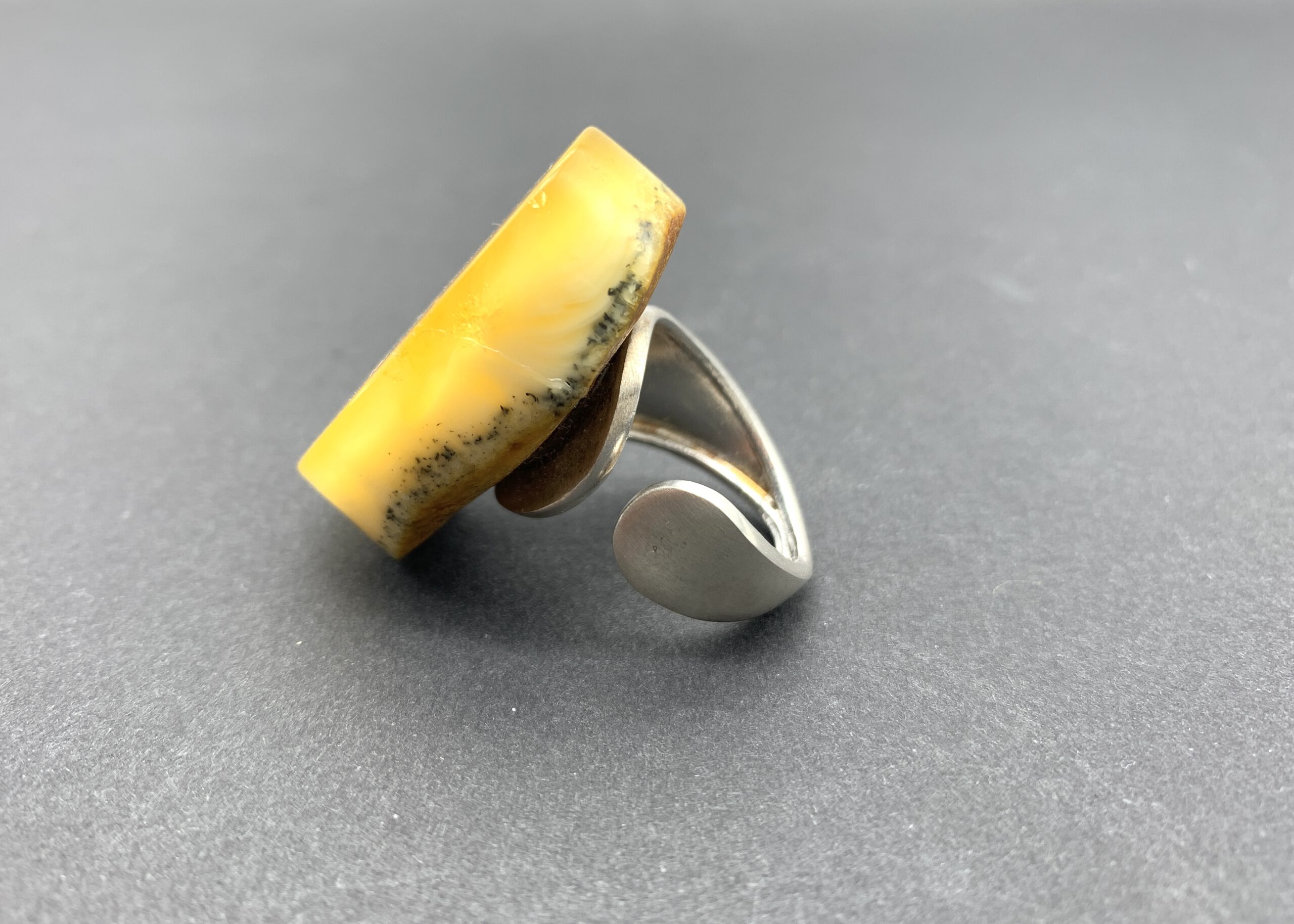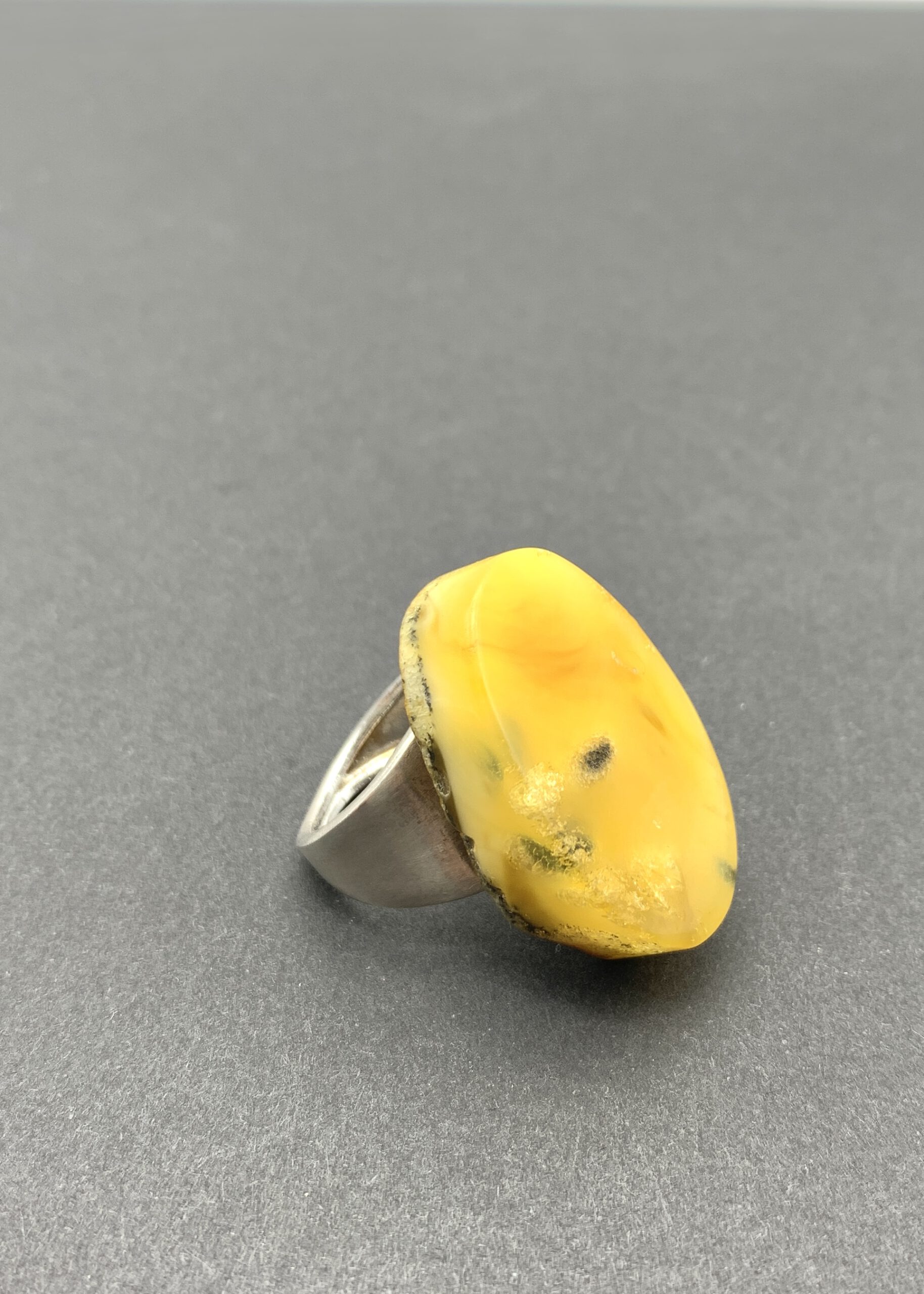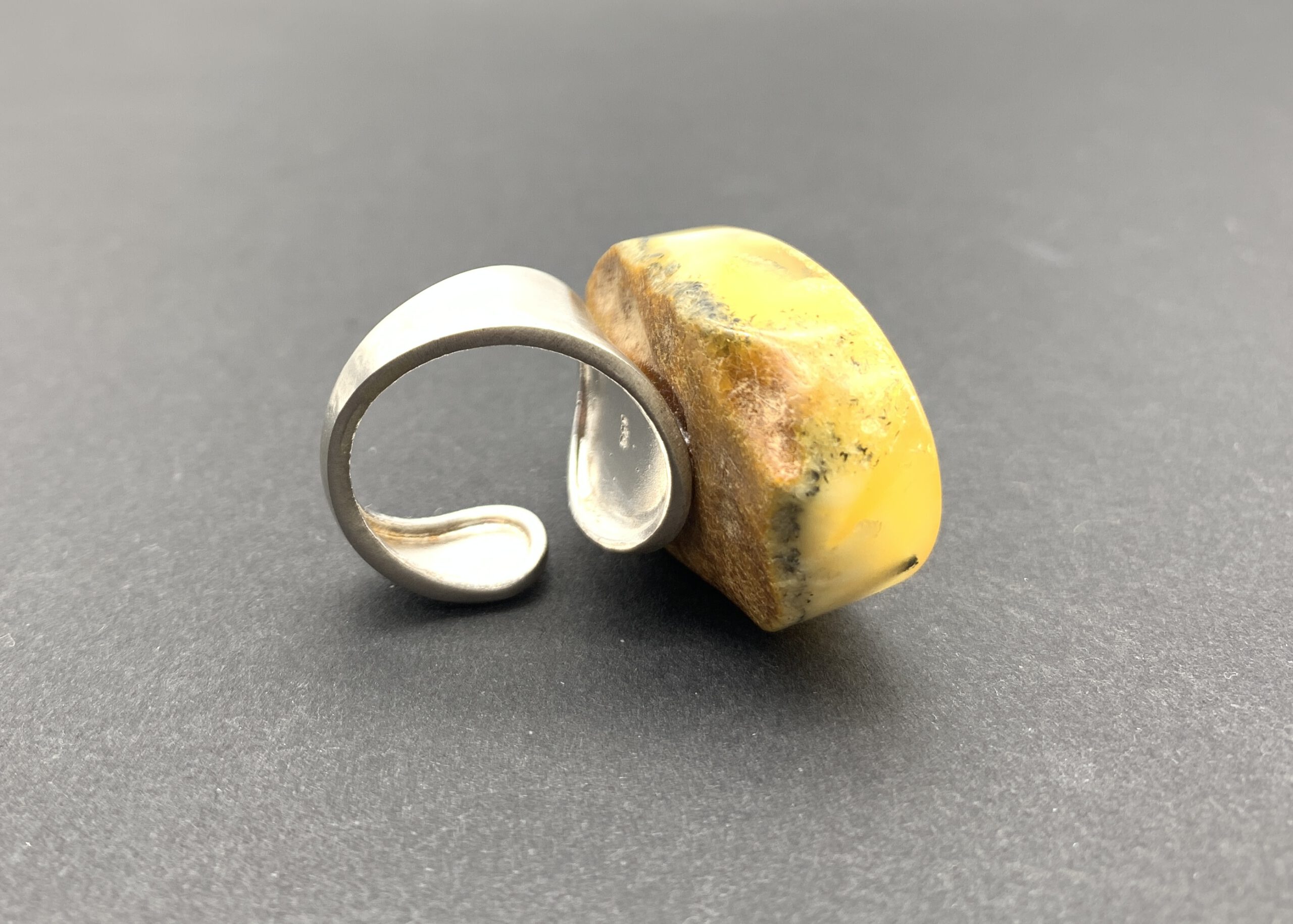 Dieser Bernstein Ring ist ein faszinierendes Meisterstück der Natur. Die minimalistische Form des handgefertigten Silberrings aus 925er Silber lässt den Blick auf den hellen baltischen Bernstein in seiner reinsten Form fallen. Mit diesem stylischen und auffälligen Schmuckstück setzen Sie ein beeindruckendes Statement und tragen ein Stück Natur in einzigartiger Form.
