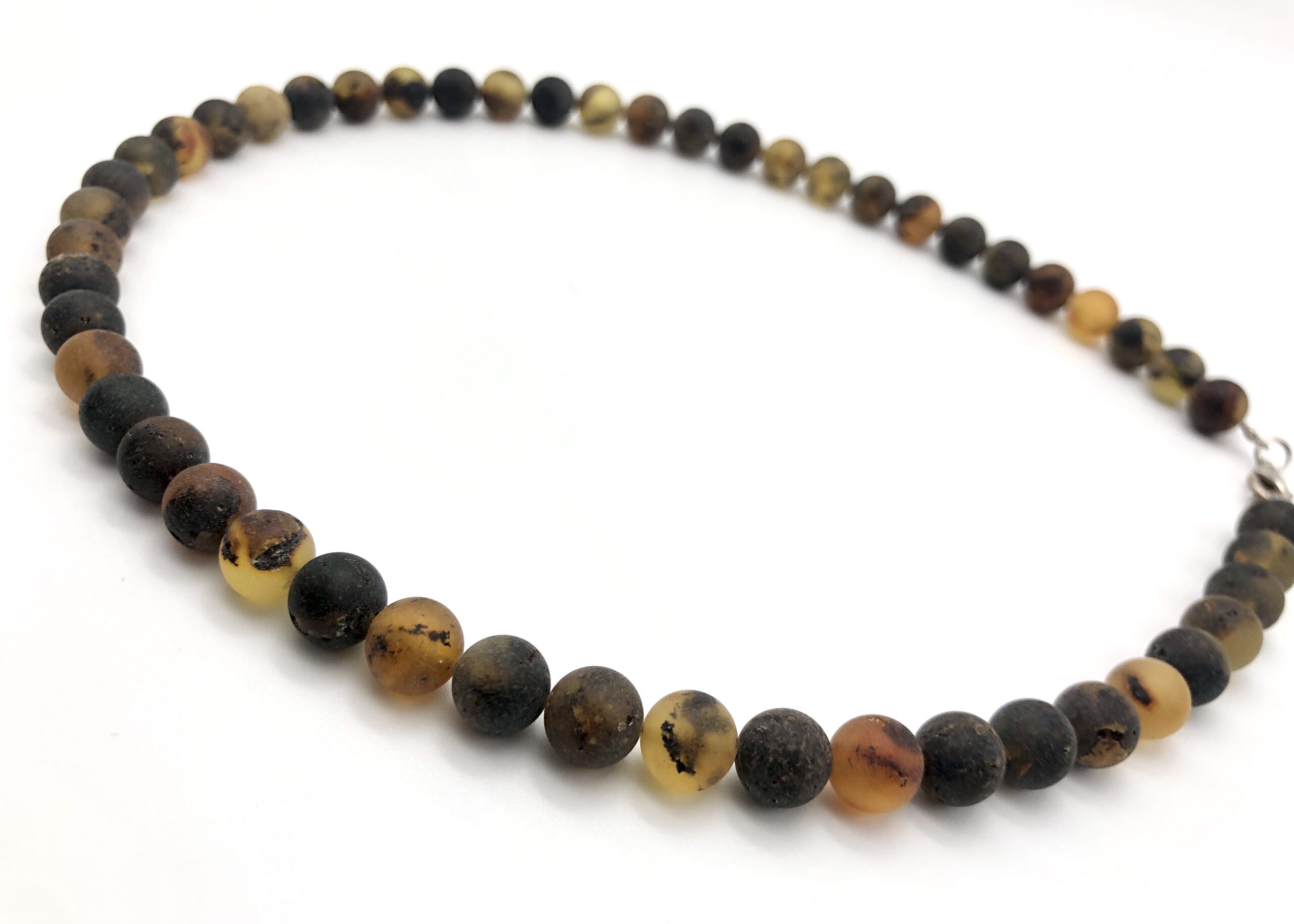 Bernsteinkette naturbelassenem aus baltischen Bernstein in Kugelform.