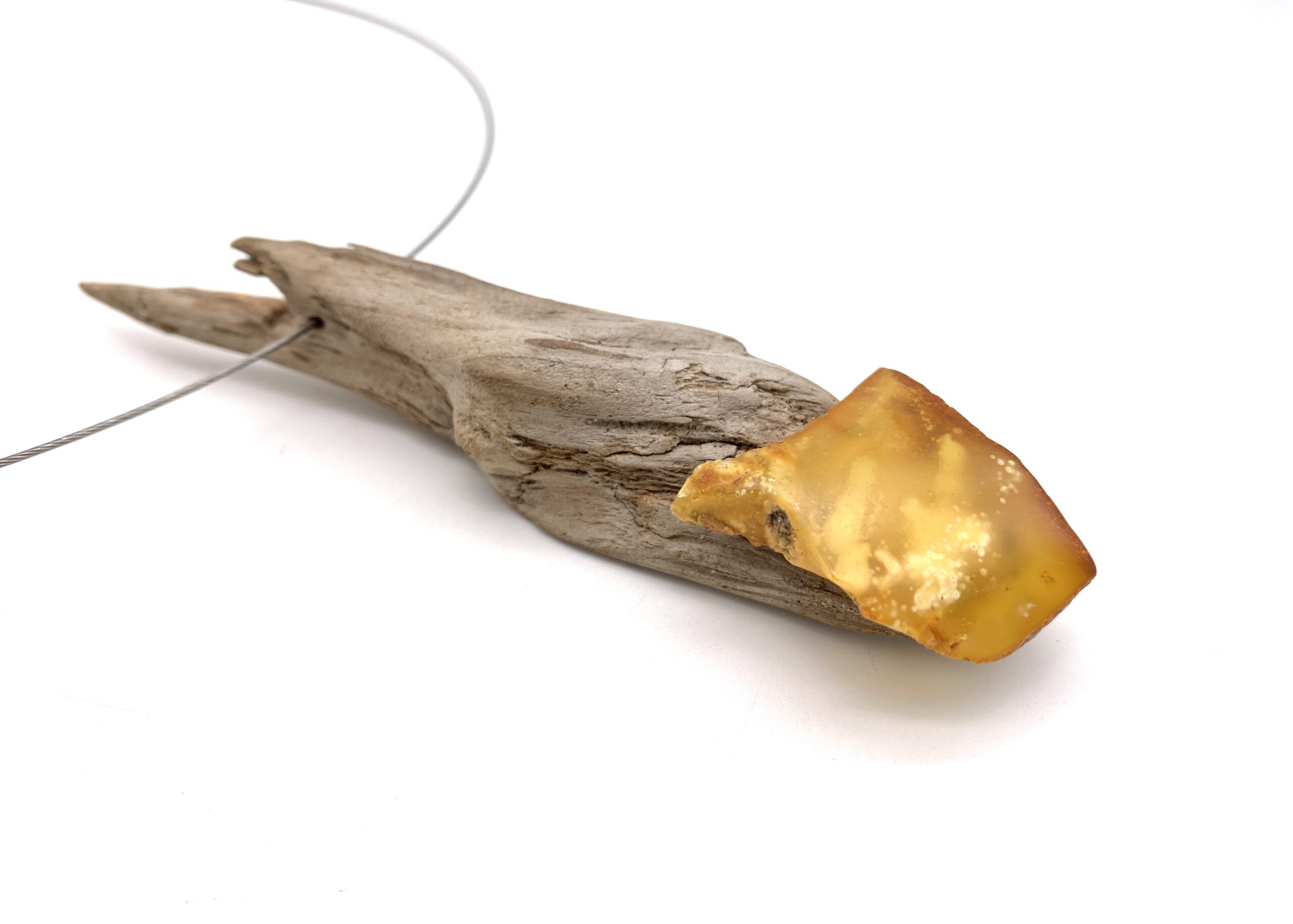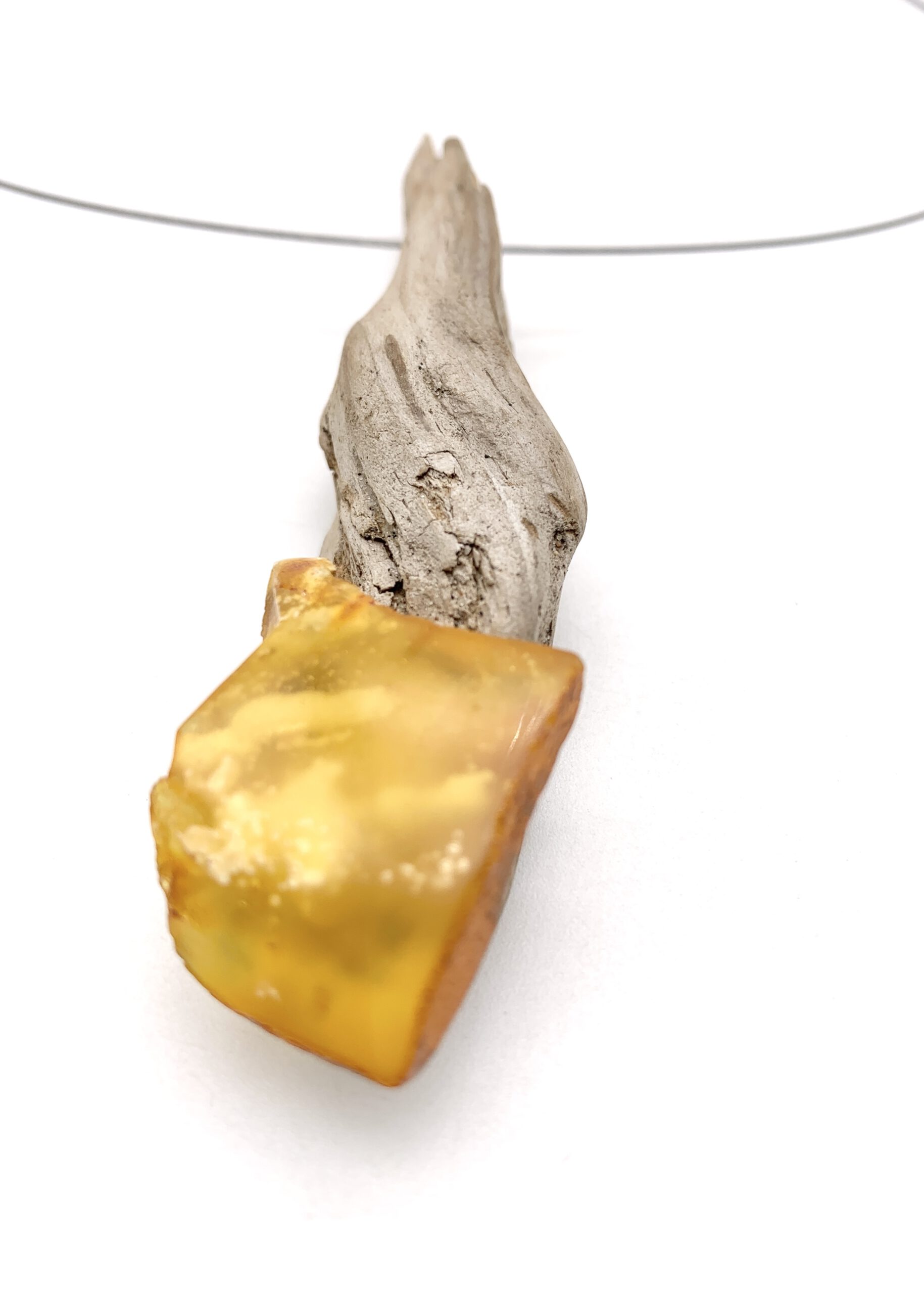 Natur pur – diese handgefertigte Bernsteinkette verbindet Naturbernstein und Treibholz zu einem Schmuckstück, das sofort auffällt und trotzdem natürlich bleibt. Jede Kombination aus Holzstruktur und Stein ist einzigartig – du trägst also kein „Design von der Stange“, sondern ein echtes Unikat.