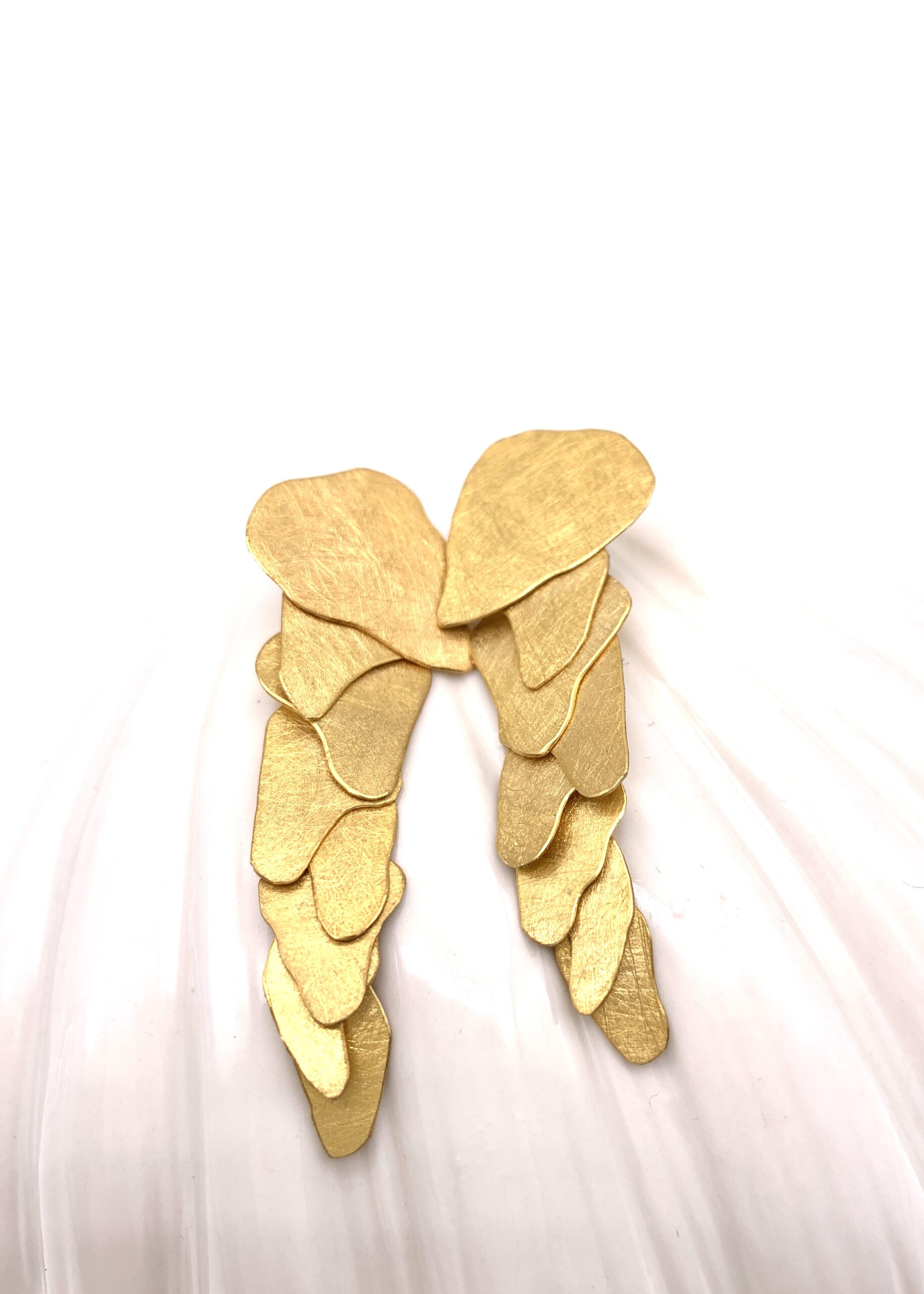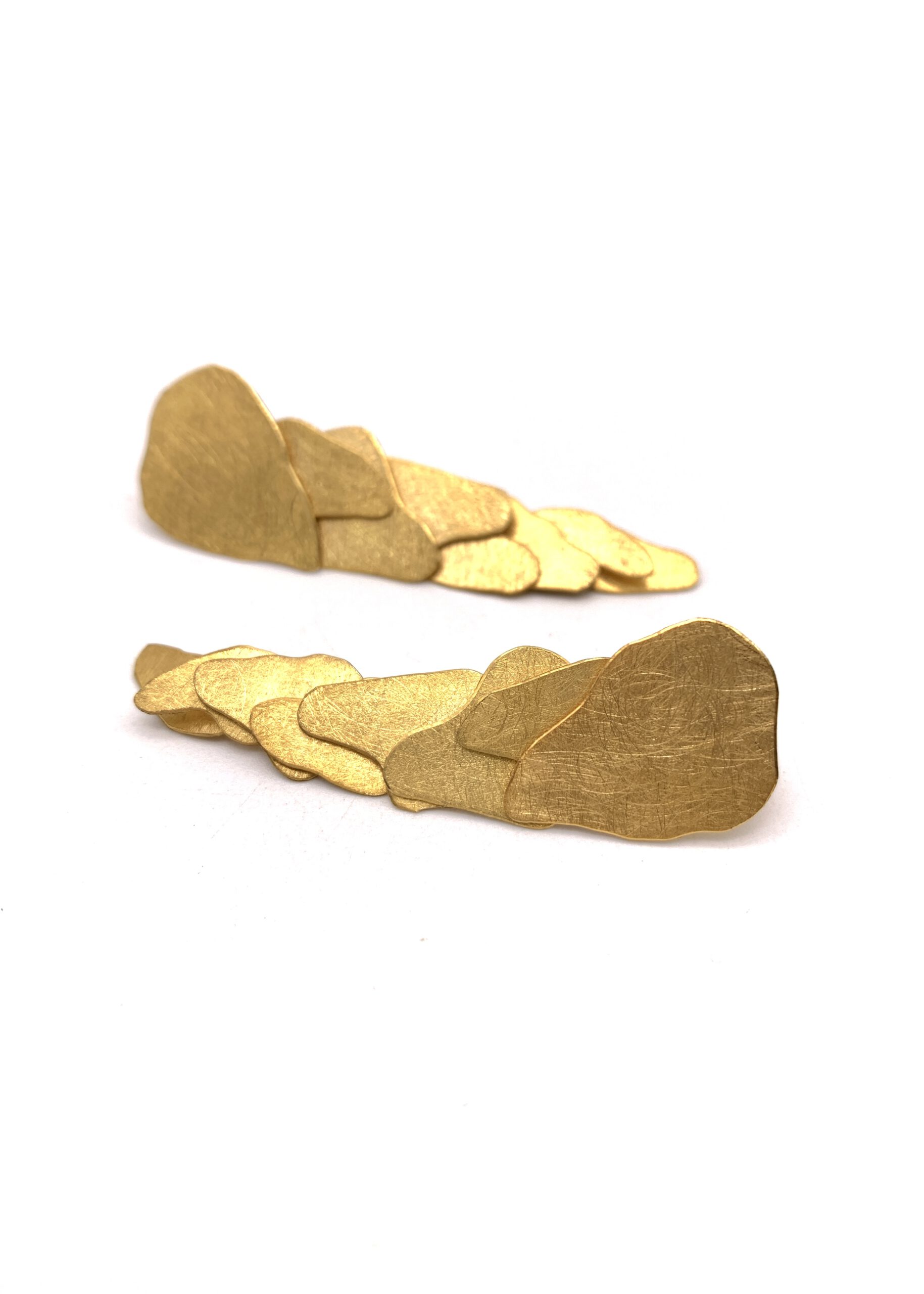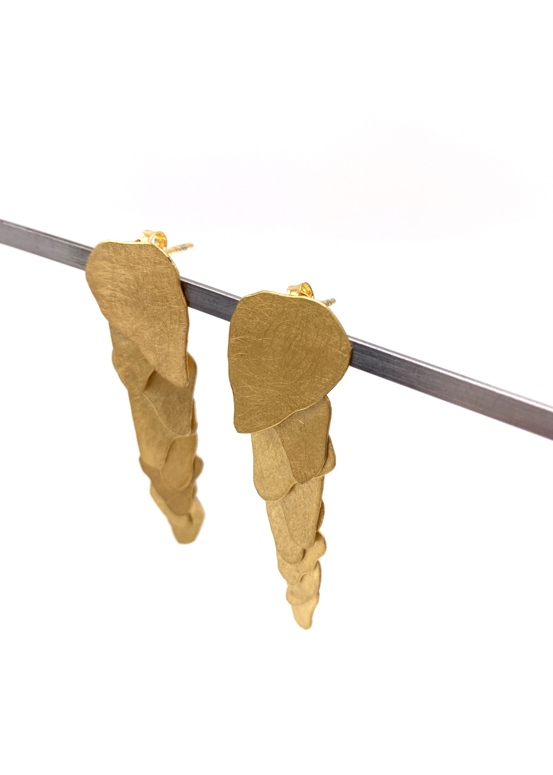Ein ausdrucksstarkes Design in fließender Form: Diese handgefertigten goldene Ohrringe erinnern an eine elegante Kaskade. Gefertigt aus hochwertigem Sterling Silber mit mattem Finish und anschließend mit edlem 24 Karat Gold vergoldet, bestechen sie durch ihre feine Struktur und den luxuriösen Glanz.