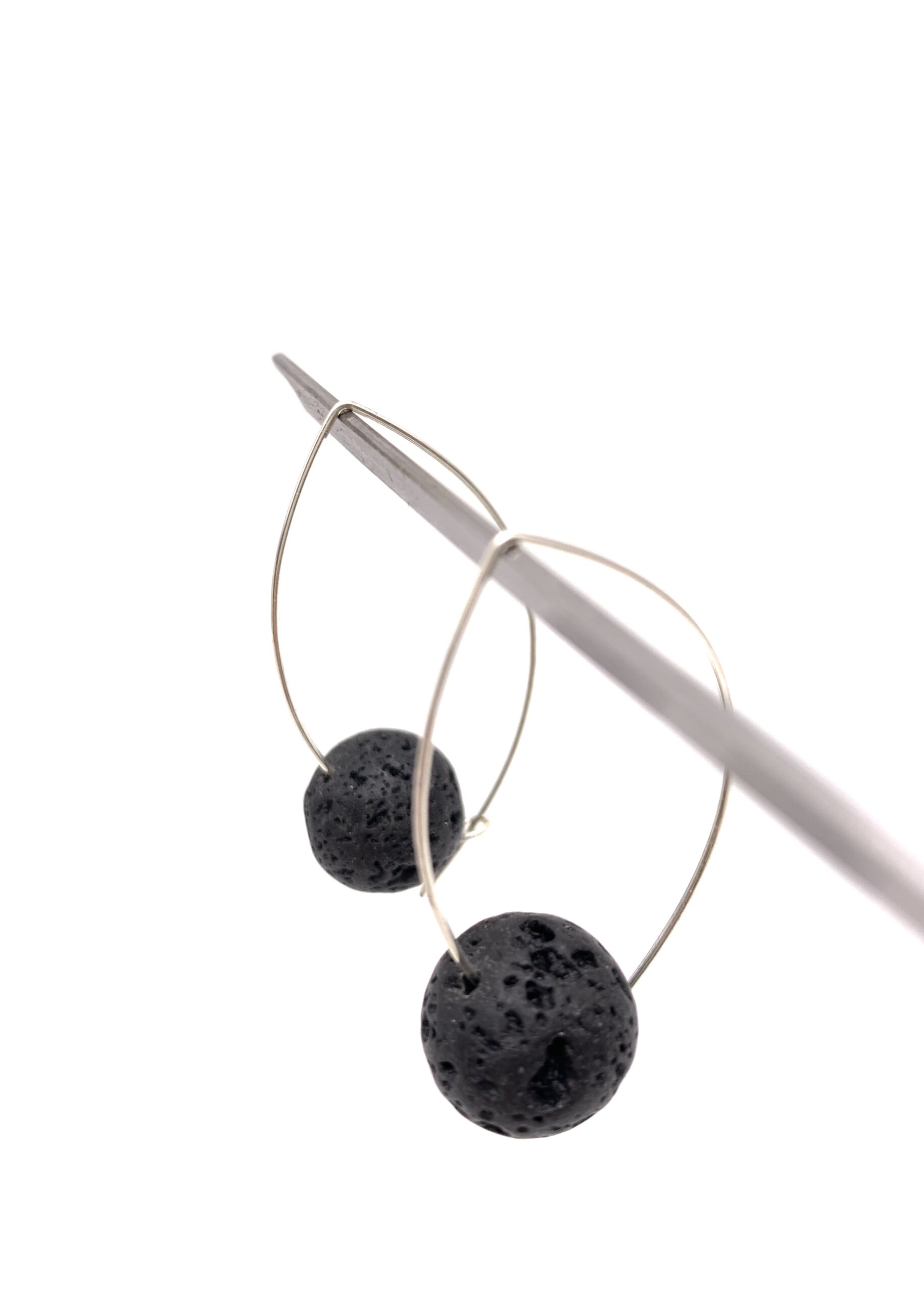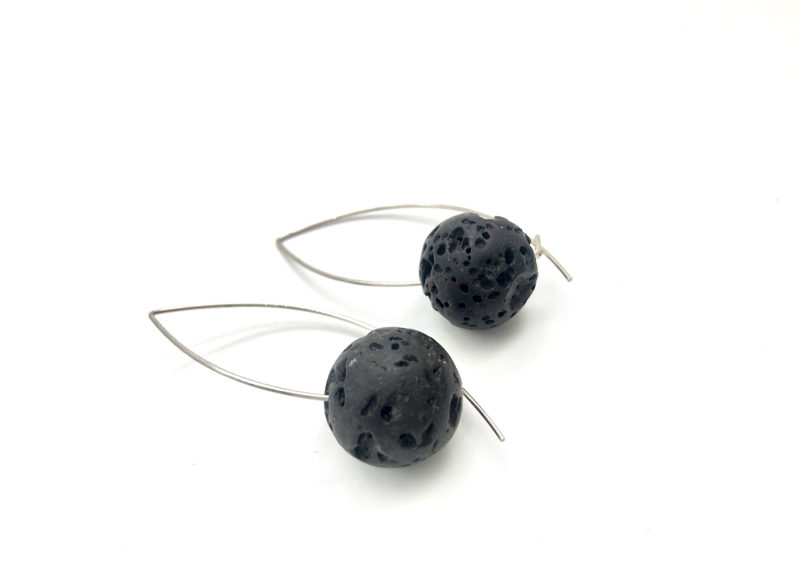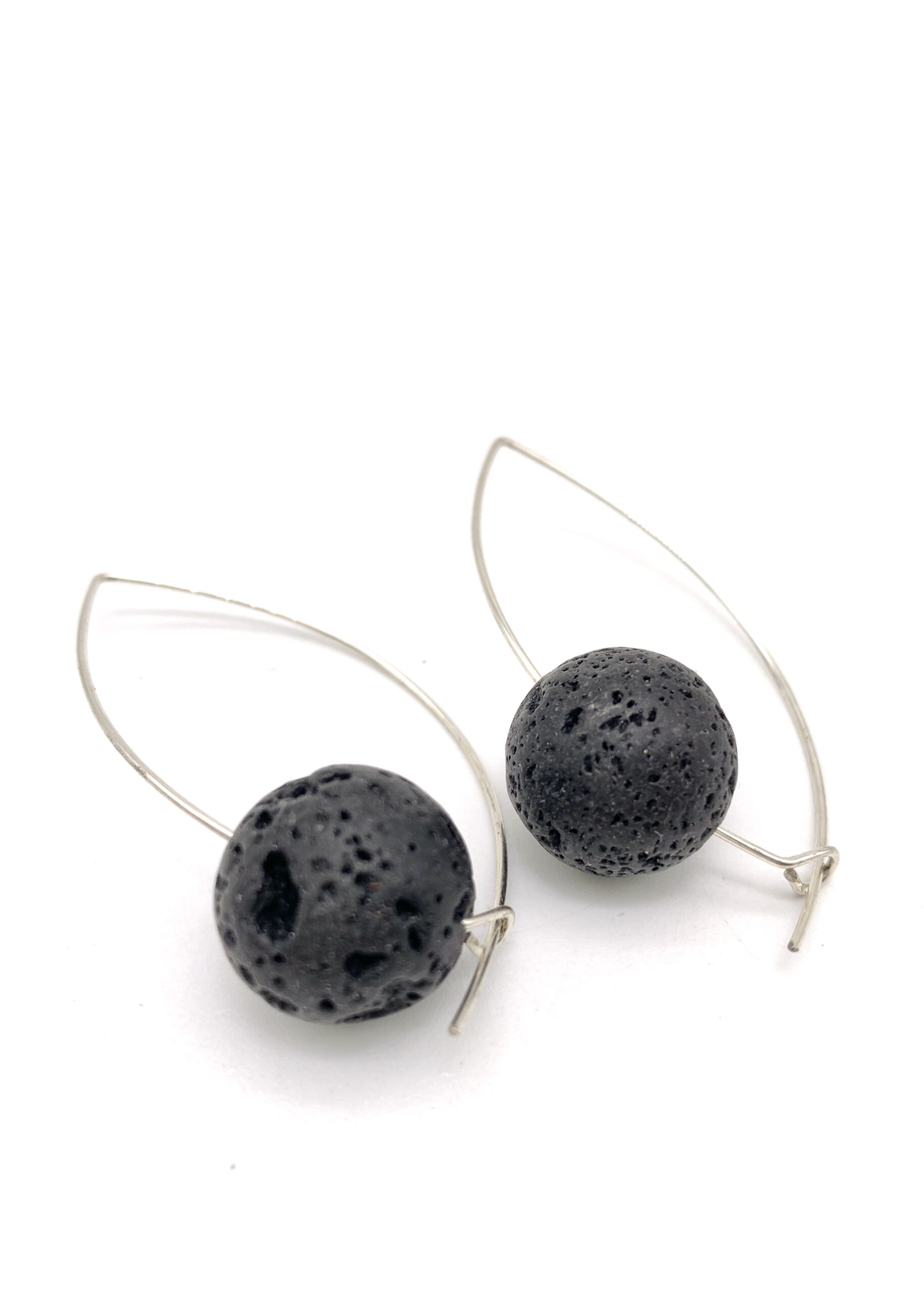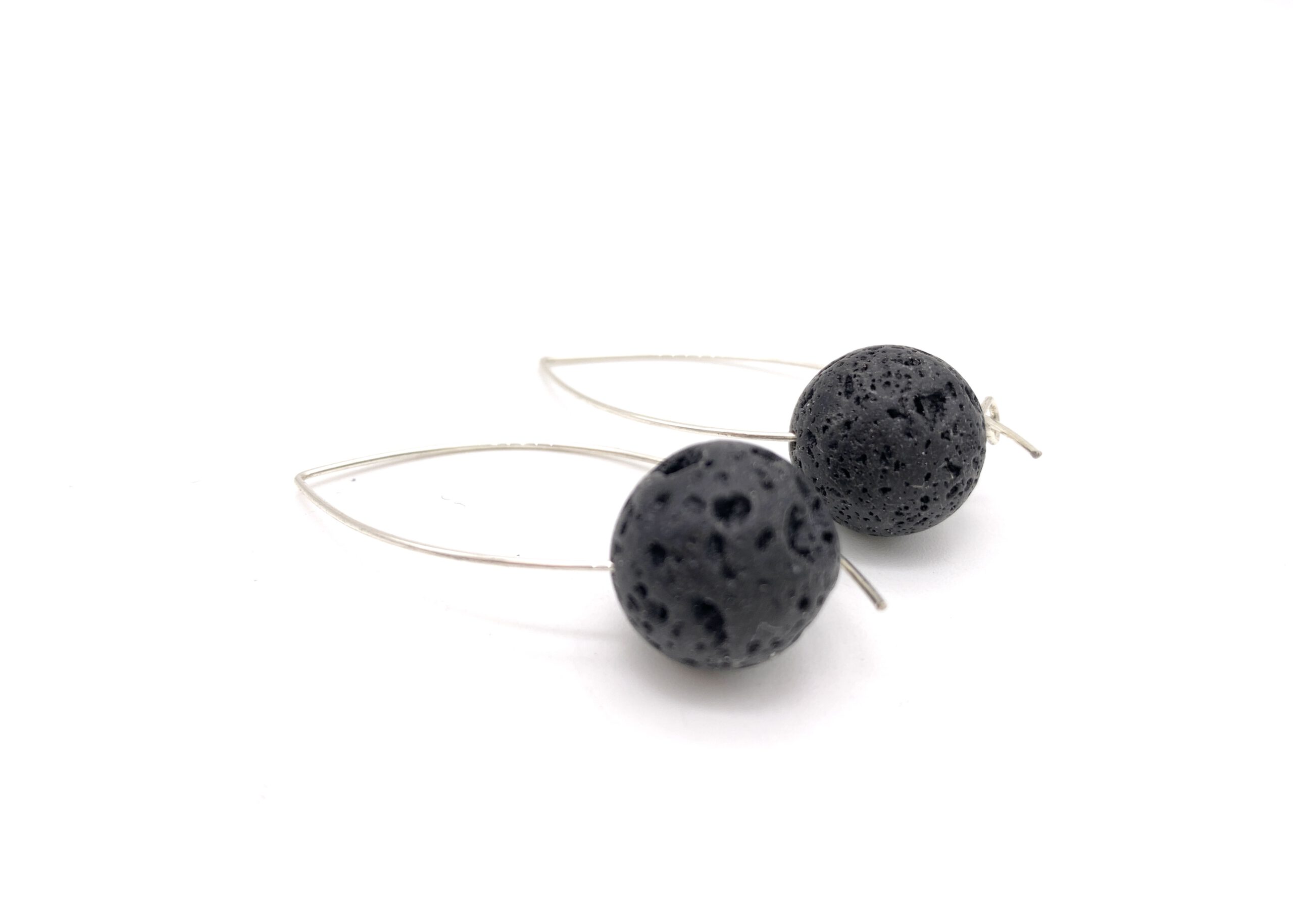 Leichte Lava-Ohrringe mit minimalistischem 925er-Silber-Design. Die besondere Form der Silberhaken in Kombination mit der Lava-Kugel ist ein echter Hingucker – schlicht, modern und zu jedem Outfit tragbar.