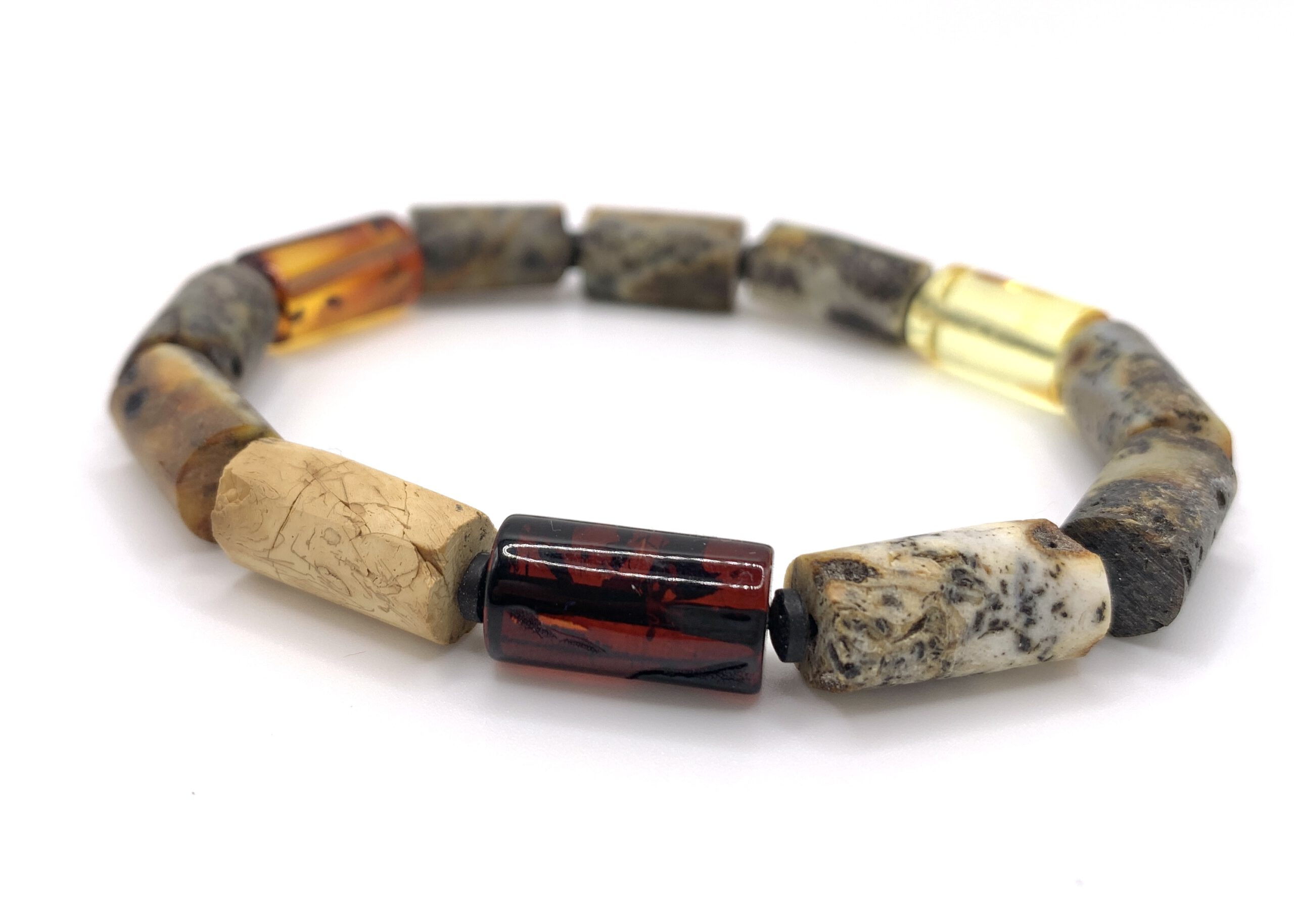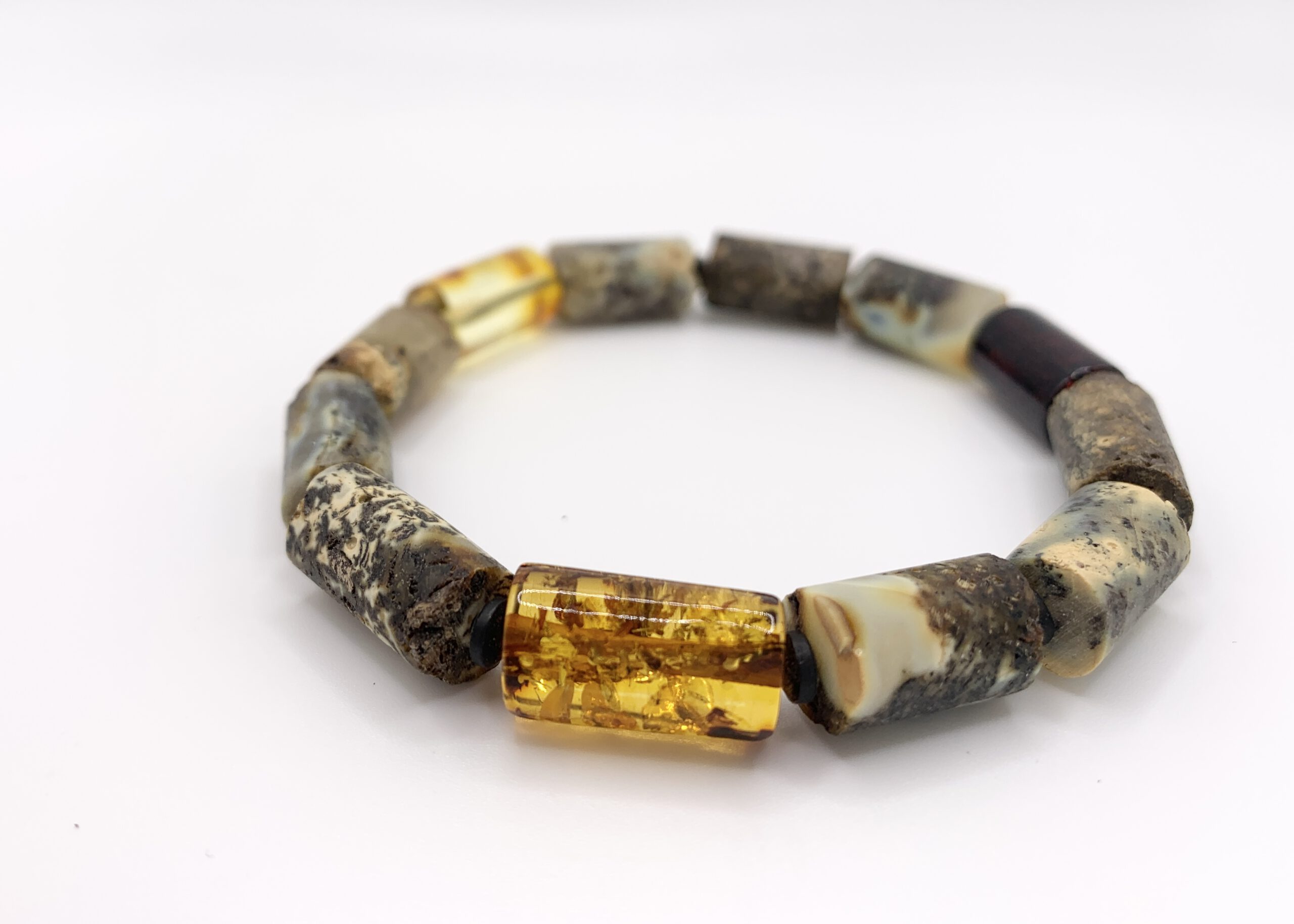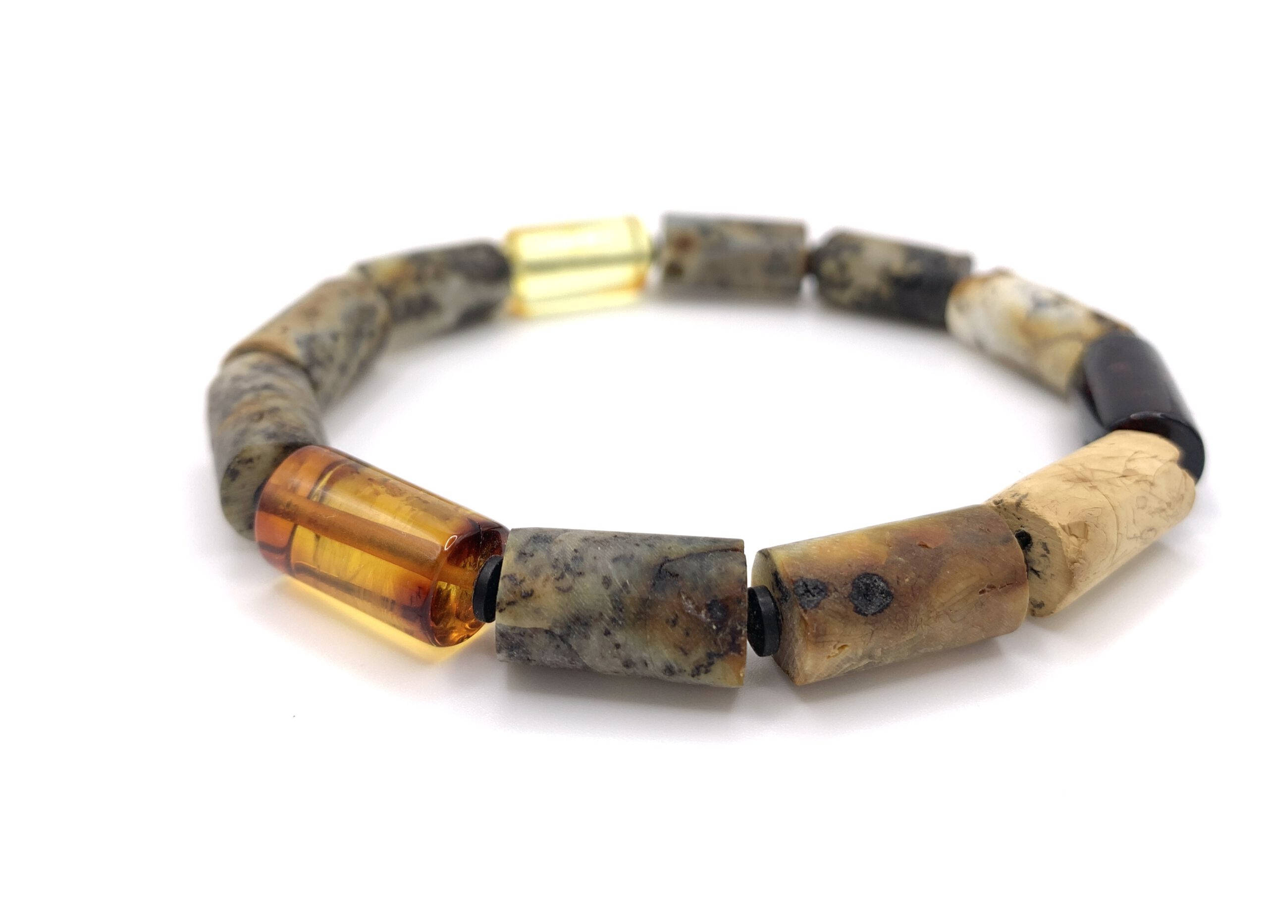 Dieses außergewöhnliche Bernstein Armband in markanter Walzenform ist ein Schmuckstück für alle, die das Besondere schätzen.