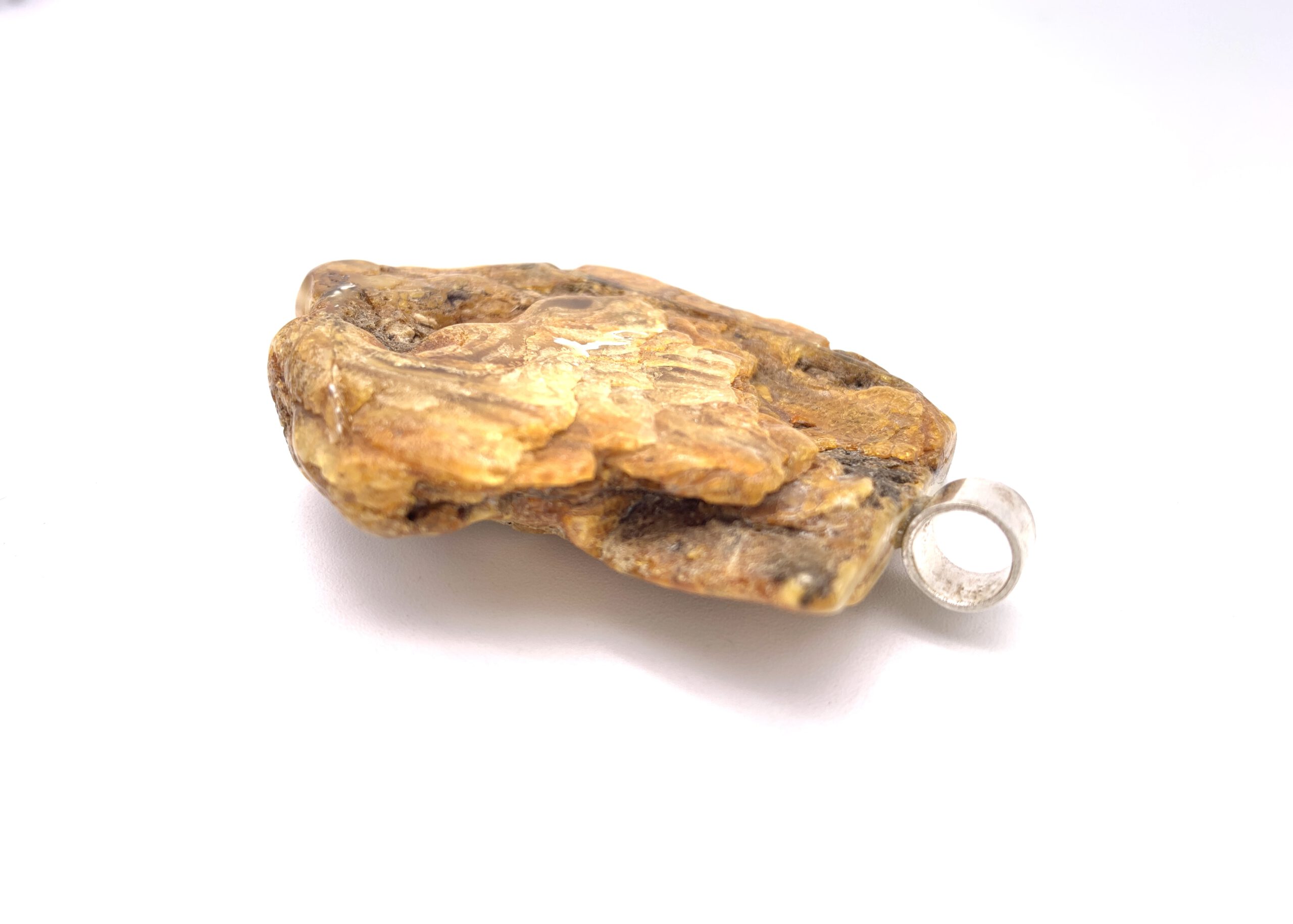 Mit diesem schlichten, aber ausdrucksstarken Naturbernstein Anhänger steht der Bernstein im Fokus. Die minimalistische Formgebung ermöglicht es, den Anhänger von beiden Seiten zu tragen. Die polierten und naturbelassenen Bereiche des Naturbernstein Anhängers verschmelzen miteinander und schaffen eine faszinierende und lebendige Optik.