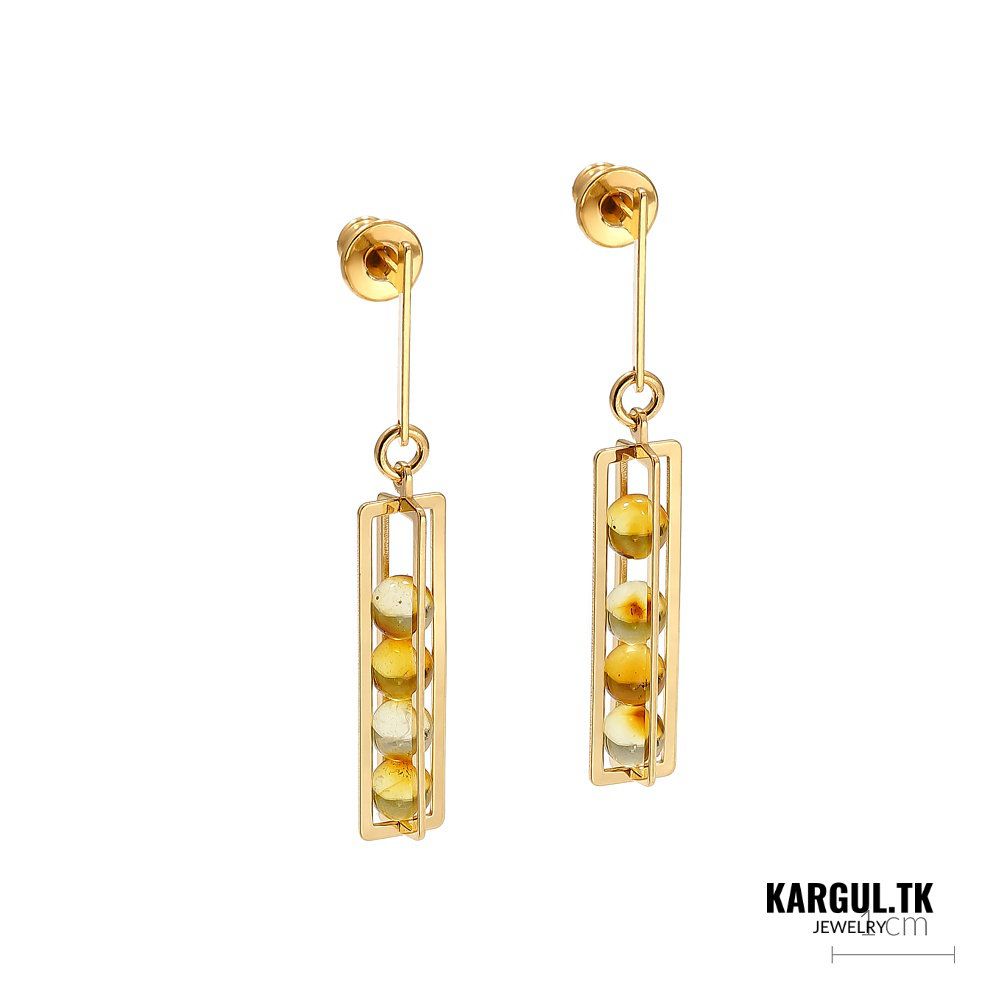 Diese außergewöhnlichen Bernstein Ohrstecker bringen Bewegung ins Spiel: Vier Kugeln aus echtem Naturbernstein gleiten frei in einem schmalen, vergoldeten Quader und fangen bei jedem Lichtstrahl neue Facetten ein. Jede Kugel hat einen Durchmesser von 4 mm und variiert in ihrer Farbe – von zartem Honigton bis zu tiefem Cognac – ganz wie es die Natur vorgibt.