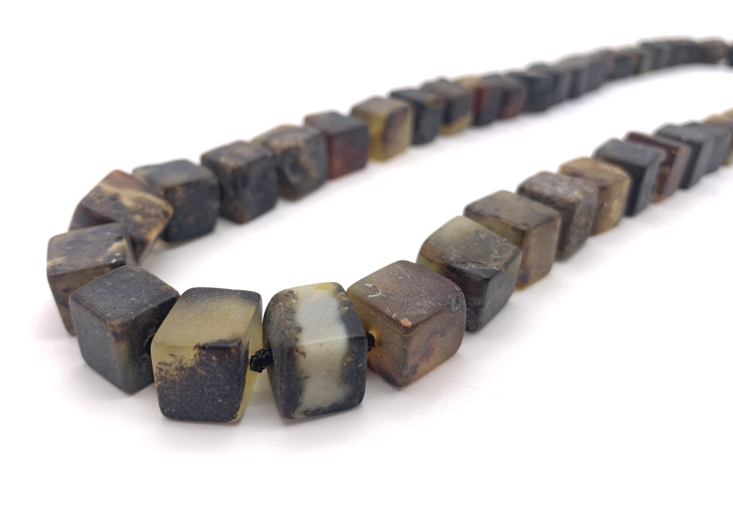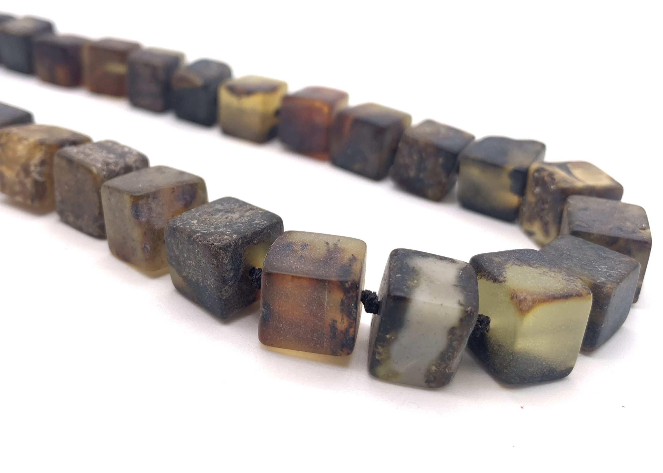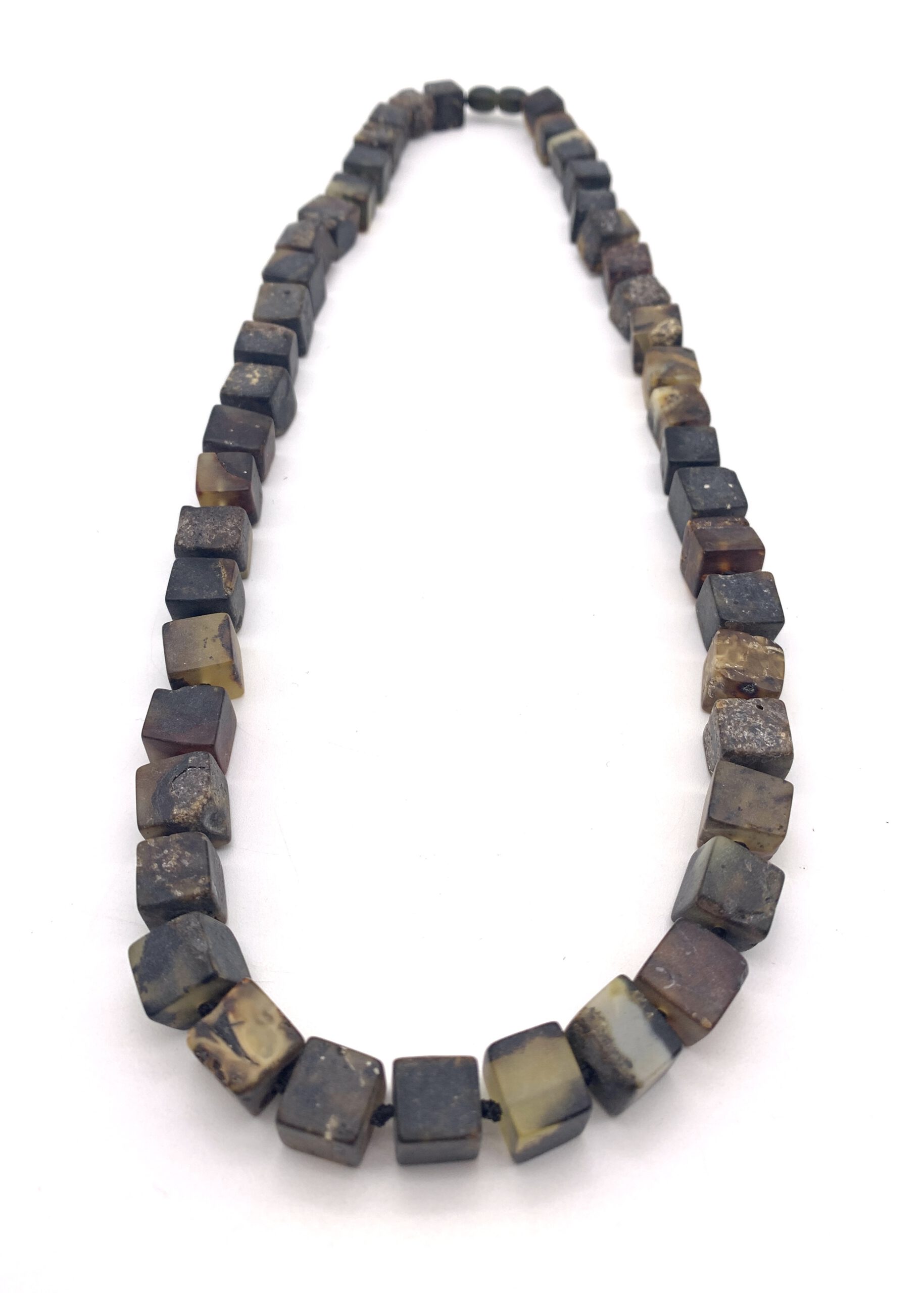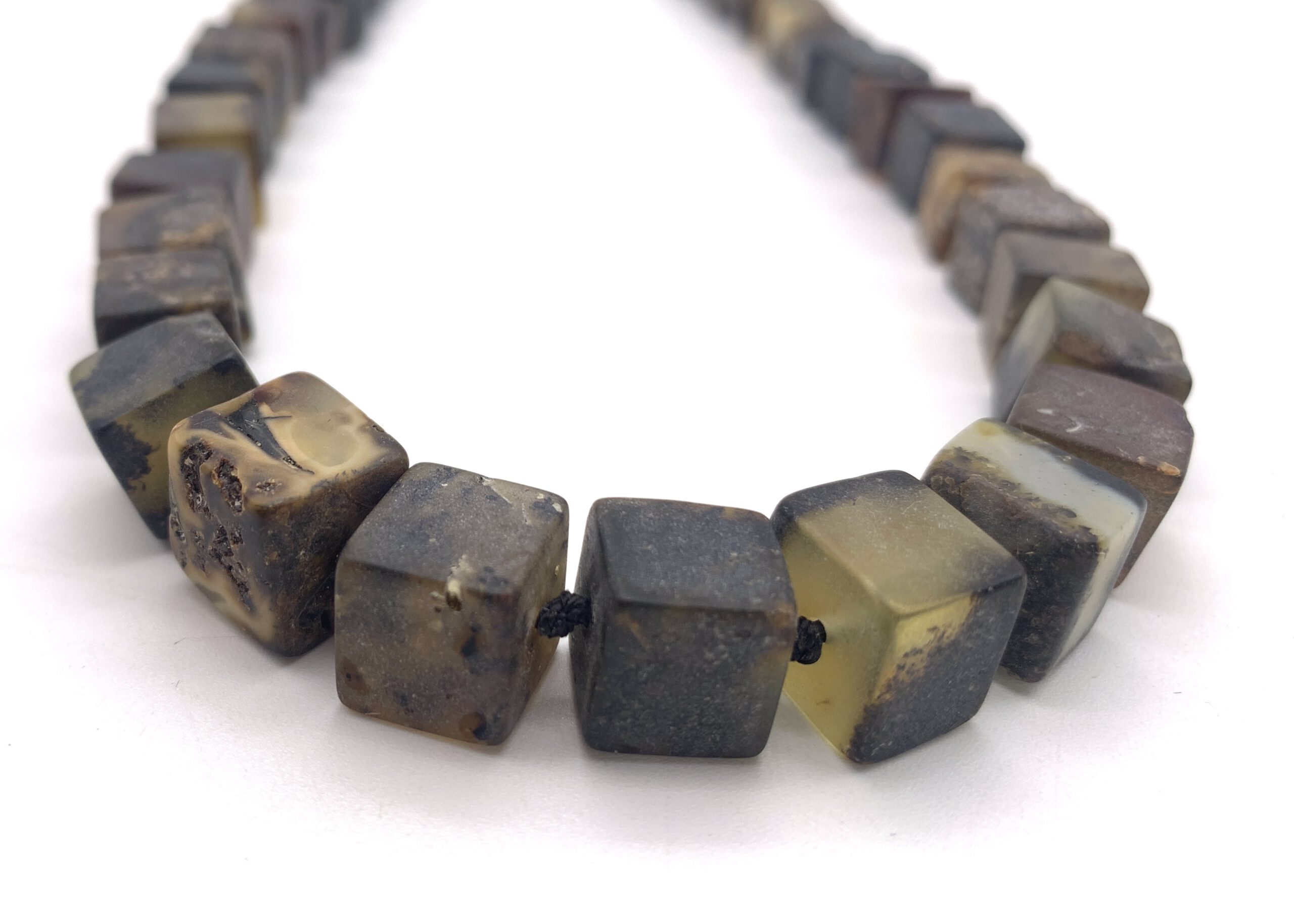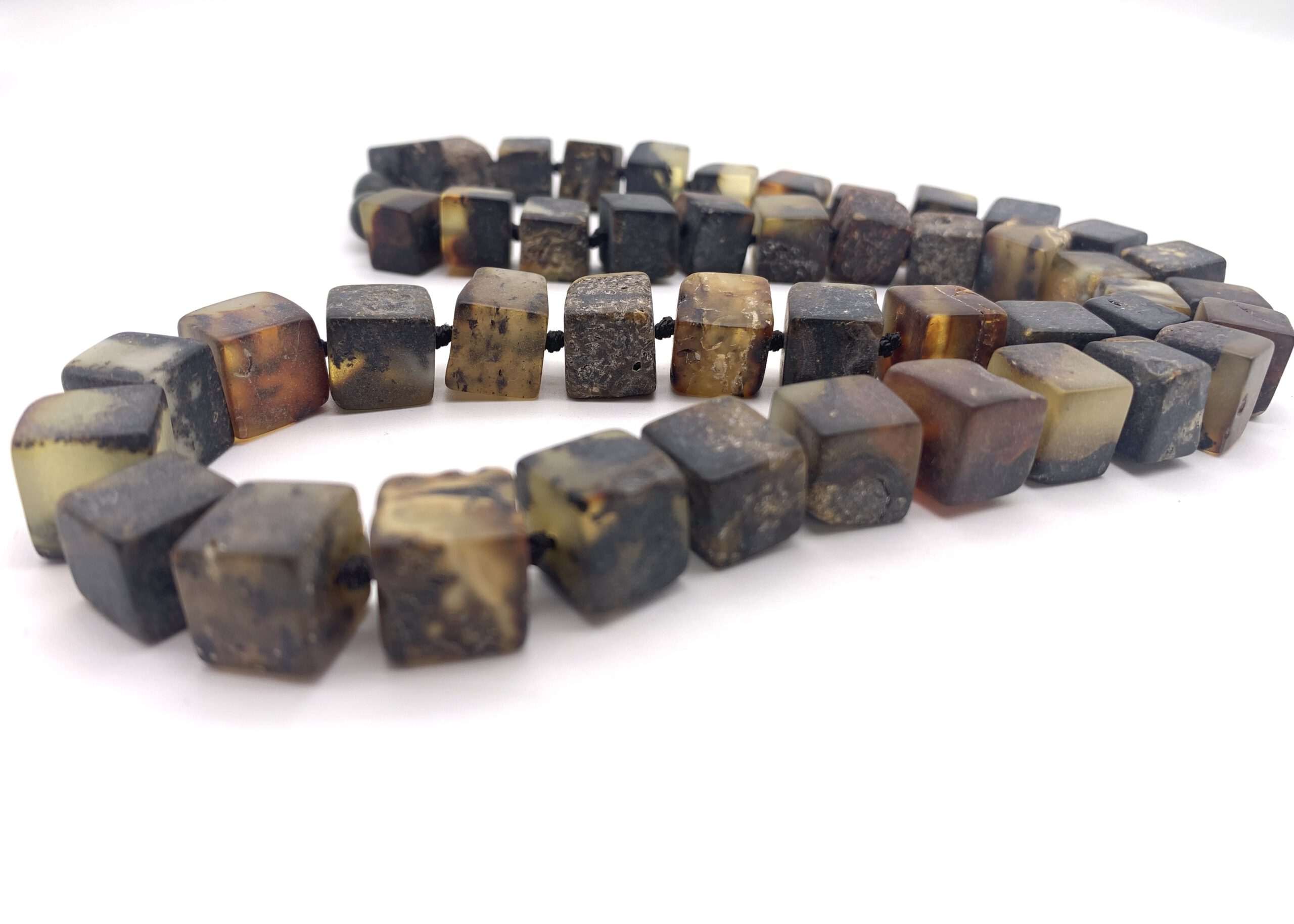 Gefertigt aus schwarzem, ungeschliffenem baltischem Bernstein in matten Würfeln, verkörpert die schwarzer Bernstein Kette schlichte Raffinesse und natürliche Ausdruckskraft.