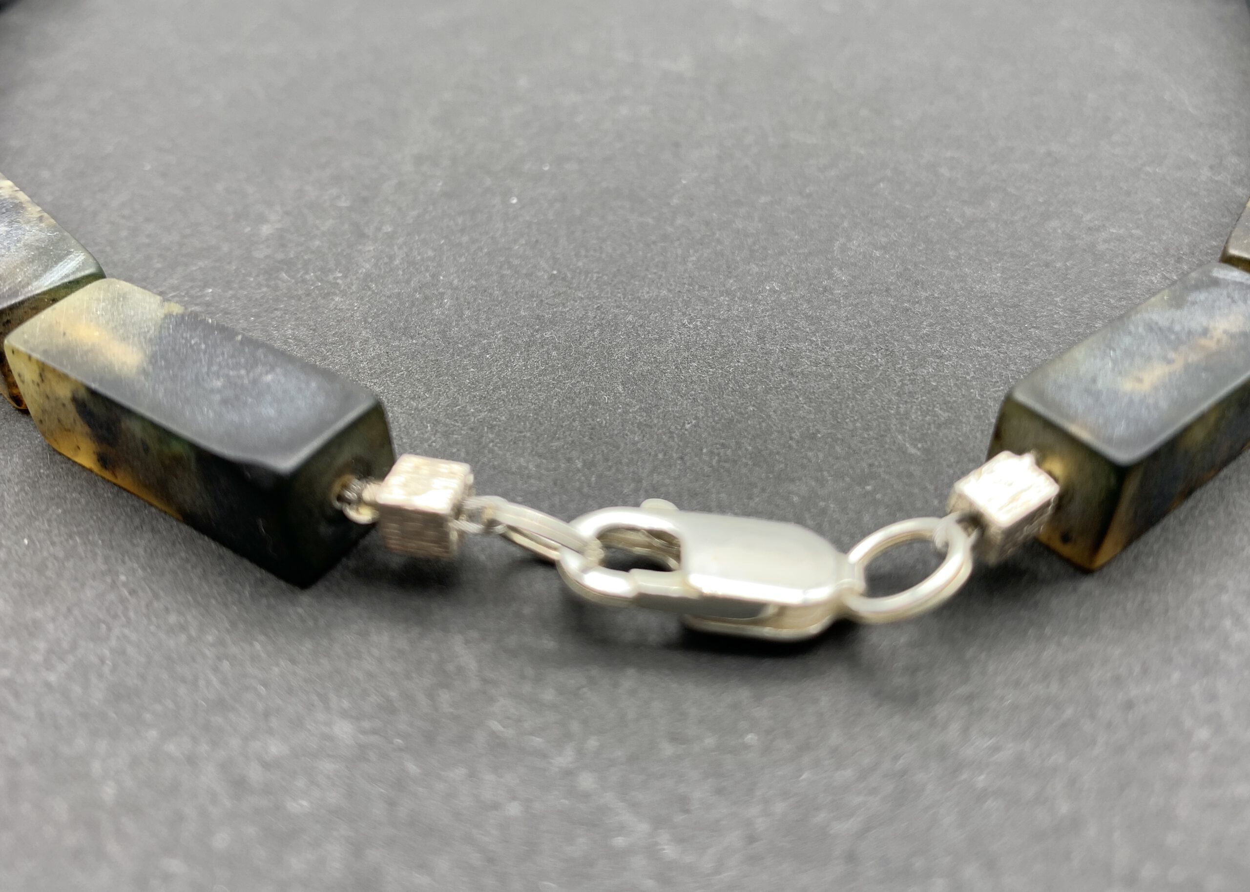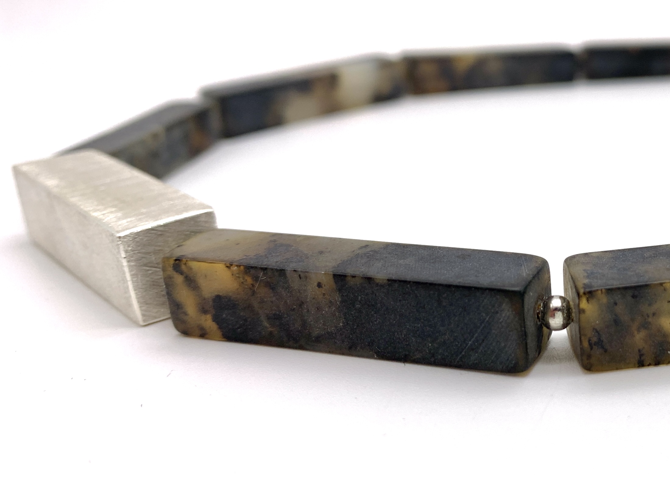 schwarzer Bernstein Kette, Silber-Quader